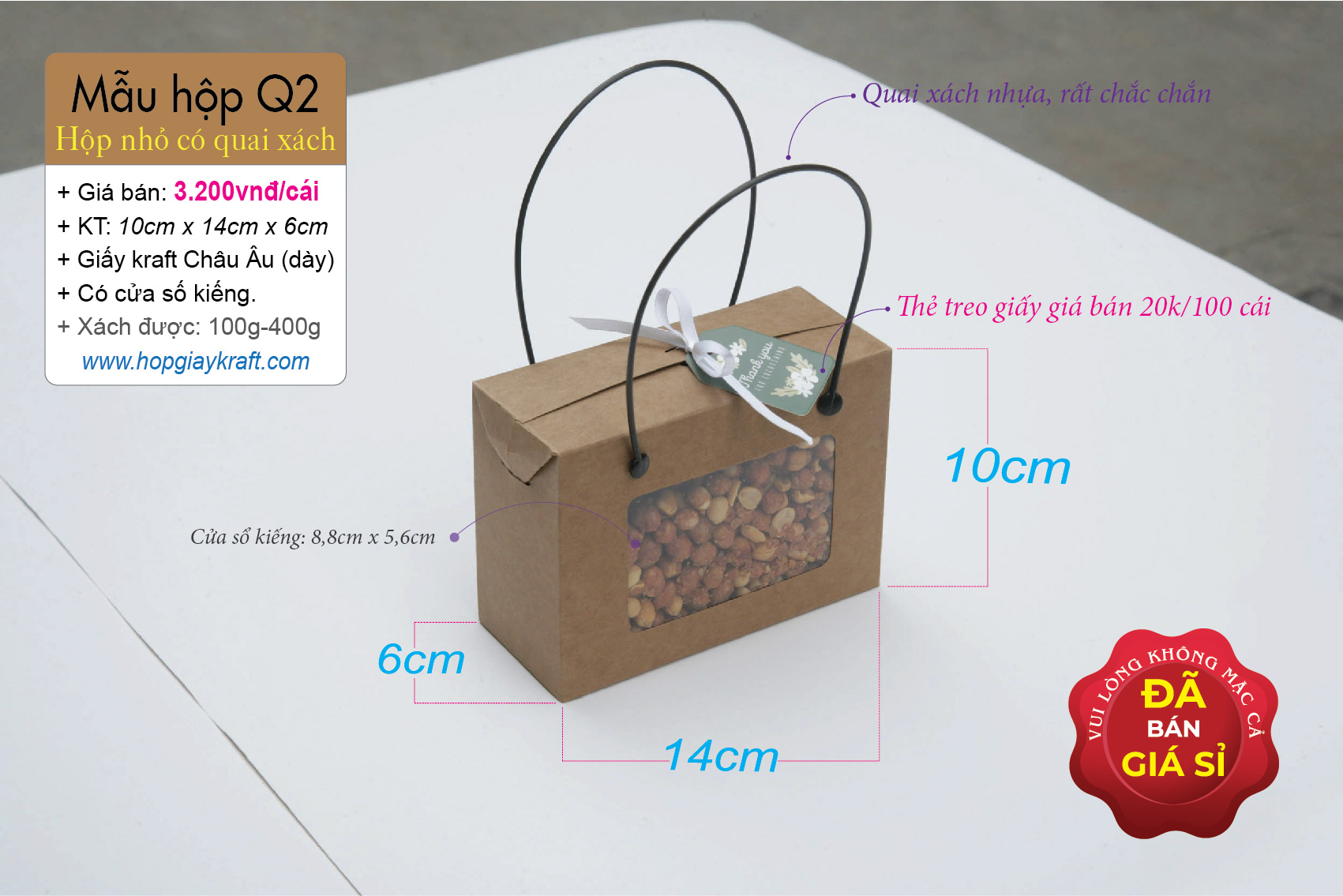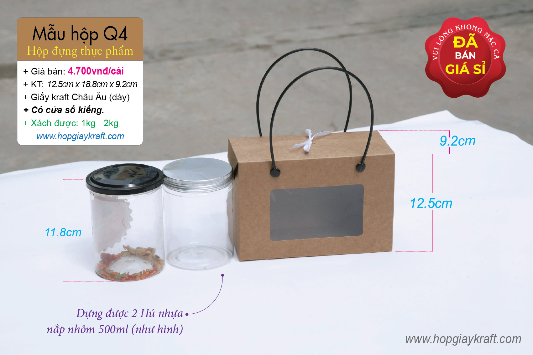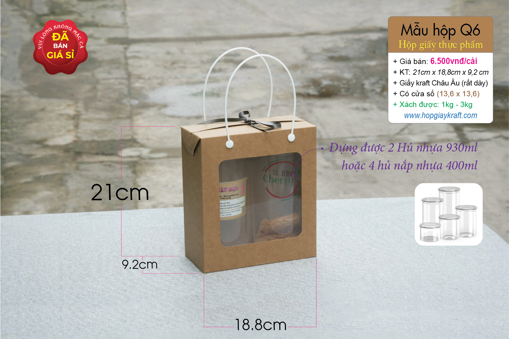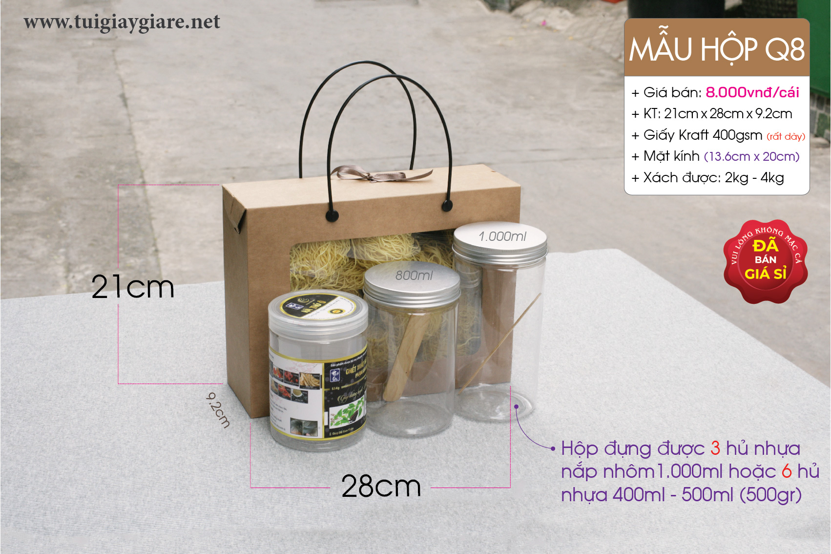 Hộp giấy kraft chuyên dùng đựng thực phẩm – khô gà, khô heo, hạt điều, đậu phộng, đồ ăn vặt – cặp hủ nhựa 500ml – 800ml hoặc 500g – 1kg có quai xách
