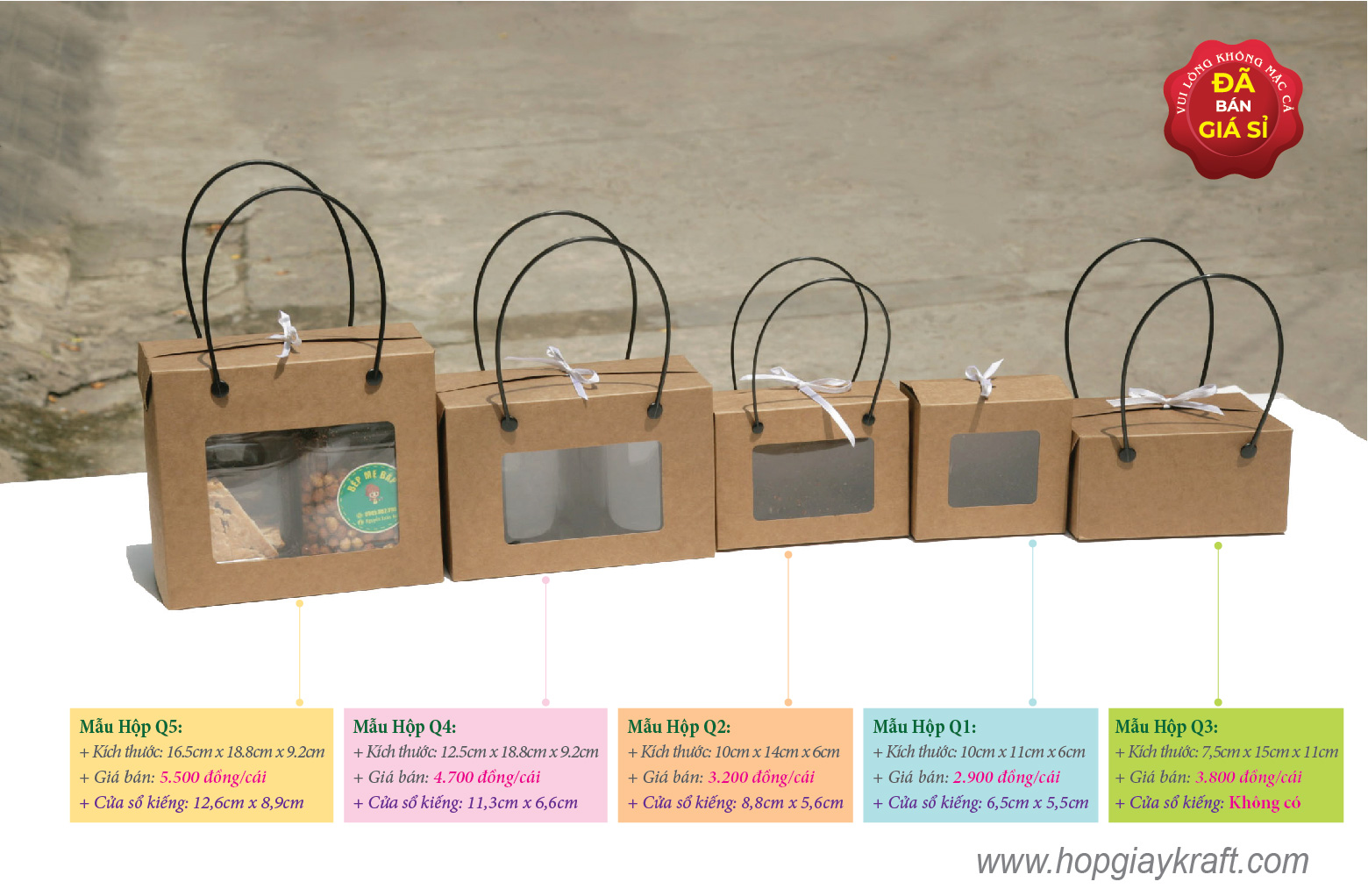 – Hộp Q1 đến Q6 làm từ giấy kraft Châu Âu 310gsm cứng cáp (Giấy kraft Châu Âu).