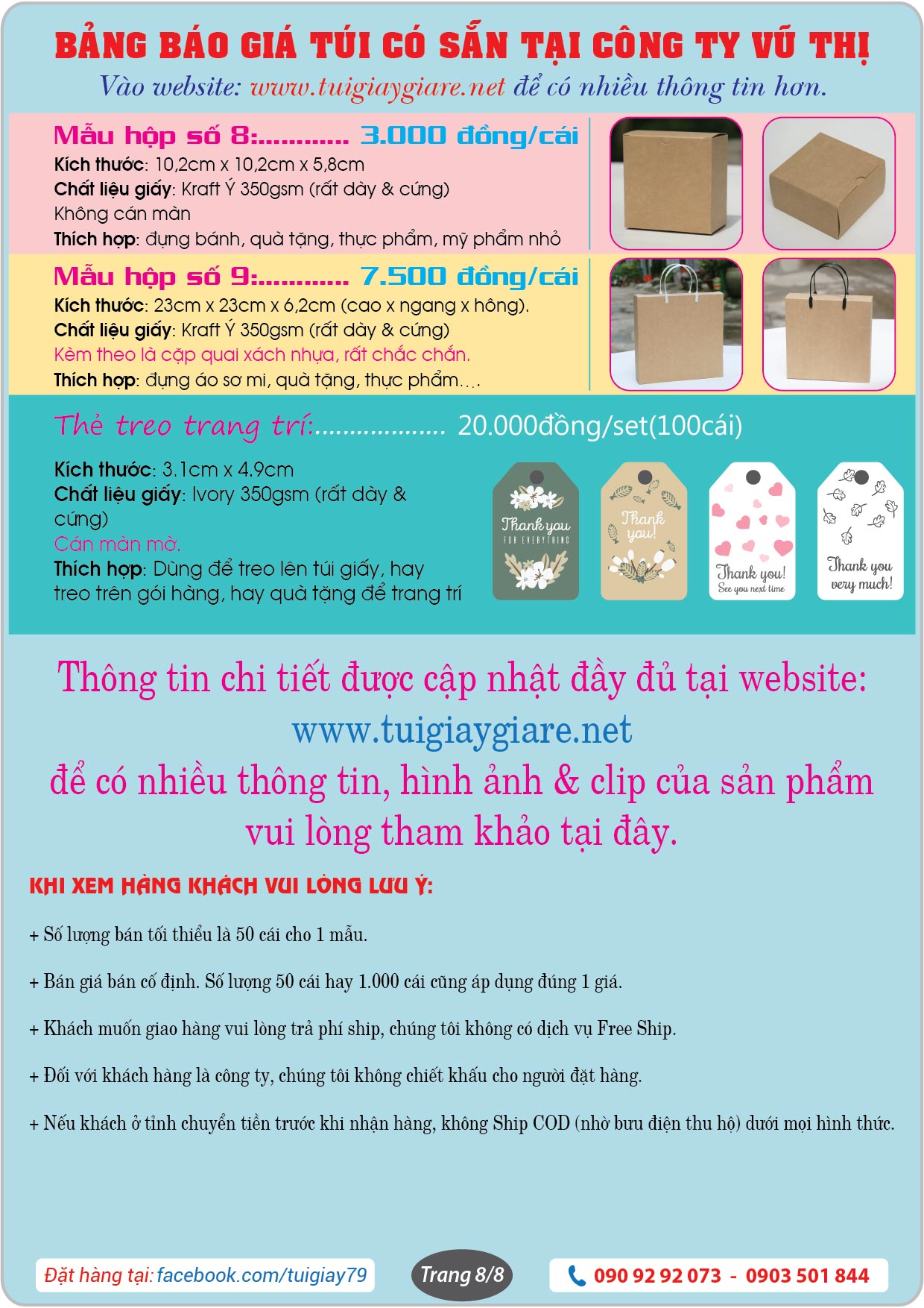 Báo giá túi giấy có sẵn do cty Vũ Thị sản xuất và phân phối