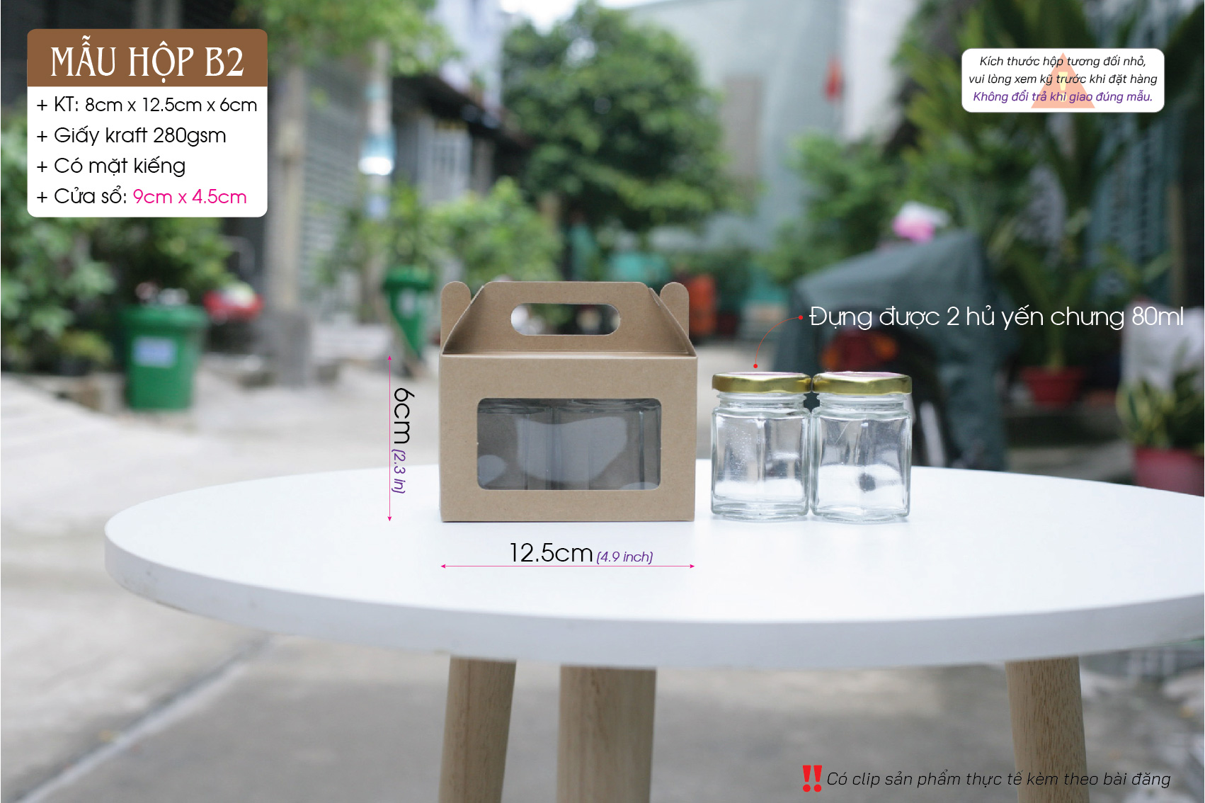 ** Hộp có kích thước nhỏ, thích hợp đựng bánh cookie, bánh kẹo và quà tặng có kích thước nhỏ. Hộp đựng được 2 hủ yến chưng 70ml -85ml.