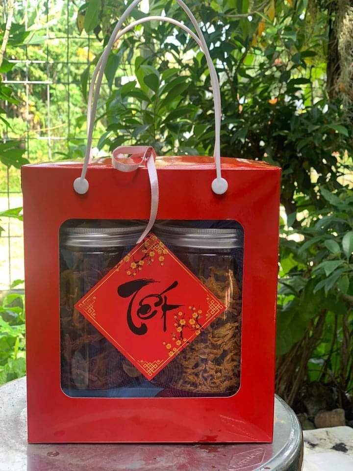 Hộp đựng bánh mứt tết – Thực phẩm – đựng khô heo, khô gà mực, hạt điều, đậu phộng, 2 hủ nhựa 1.200ml hoặc 1kg – Giấy kraft