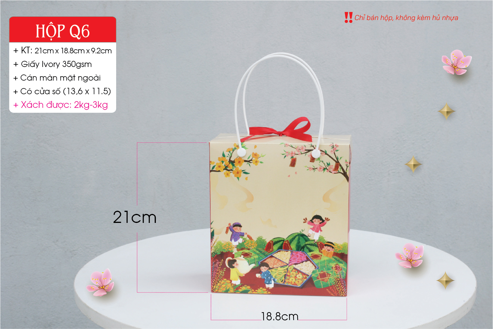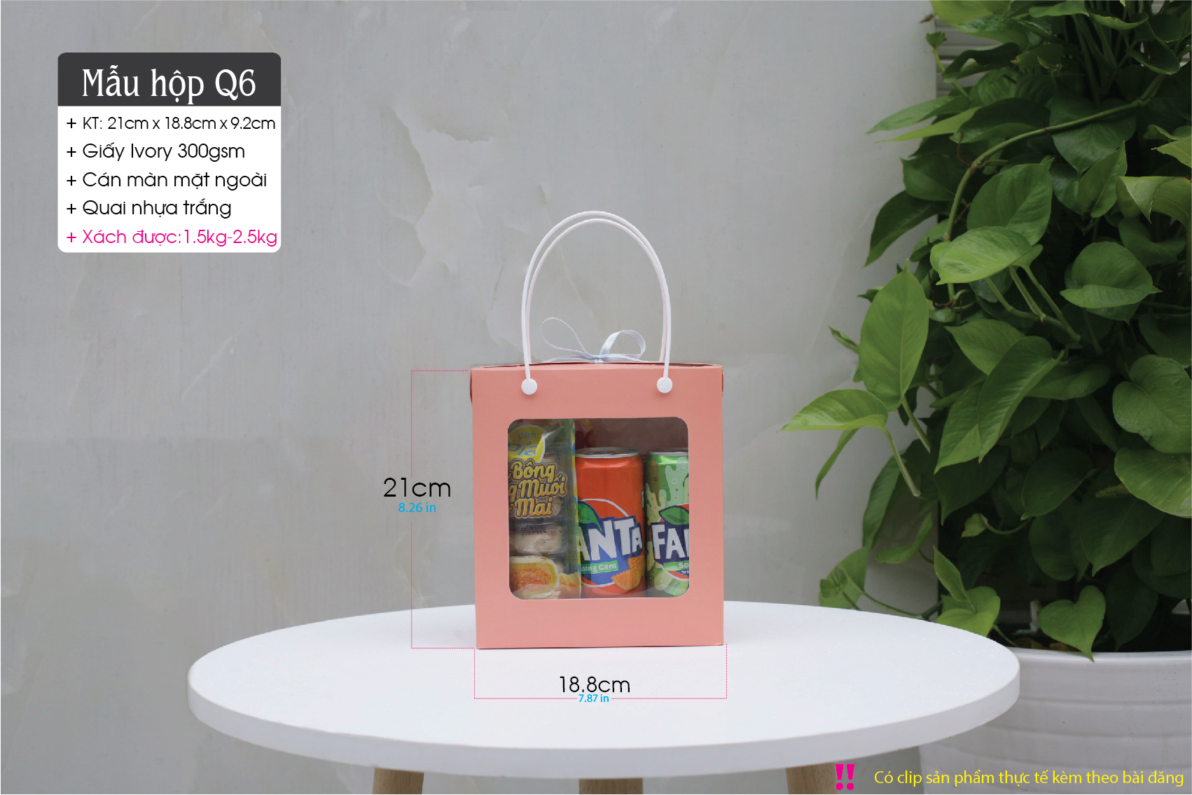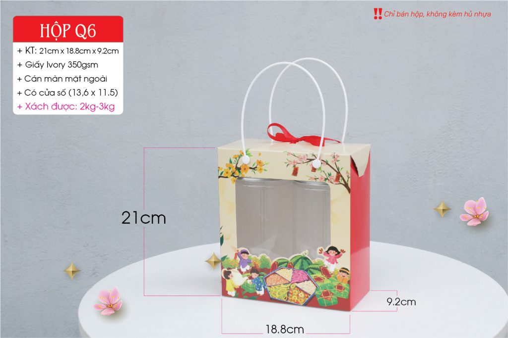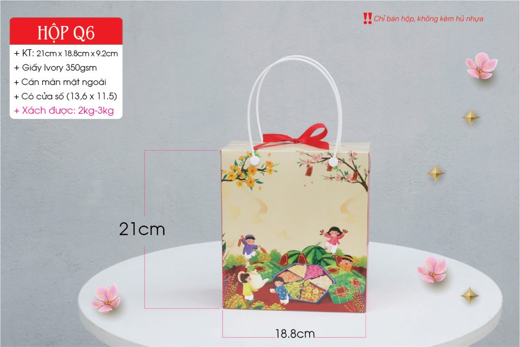 + Hộp chịu được trọng lượng đến 2.5kg nhưng Quý khách nên lưu ý kích thước từng sản phẩm sao cho phù hợp. Miễn là bỏ vừa vào túi thì sẽ xách được nhé !