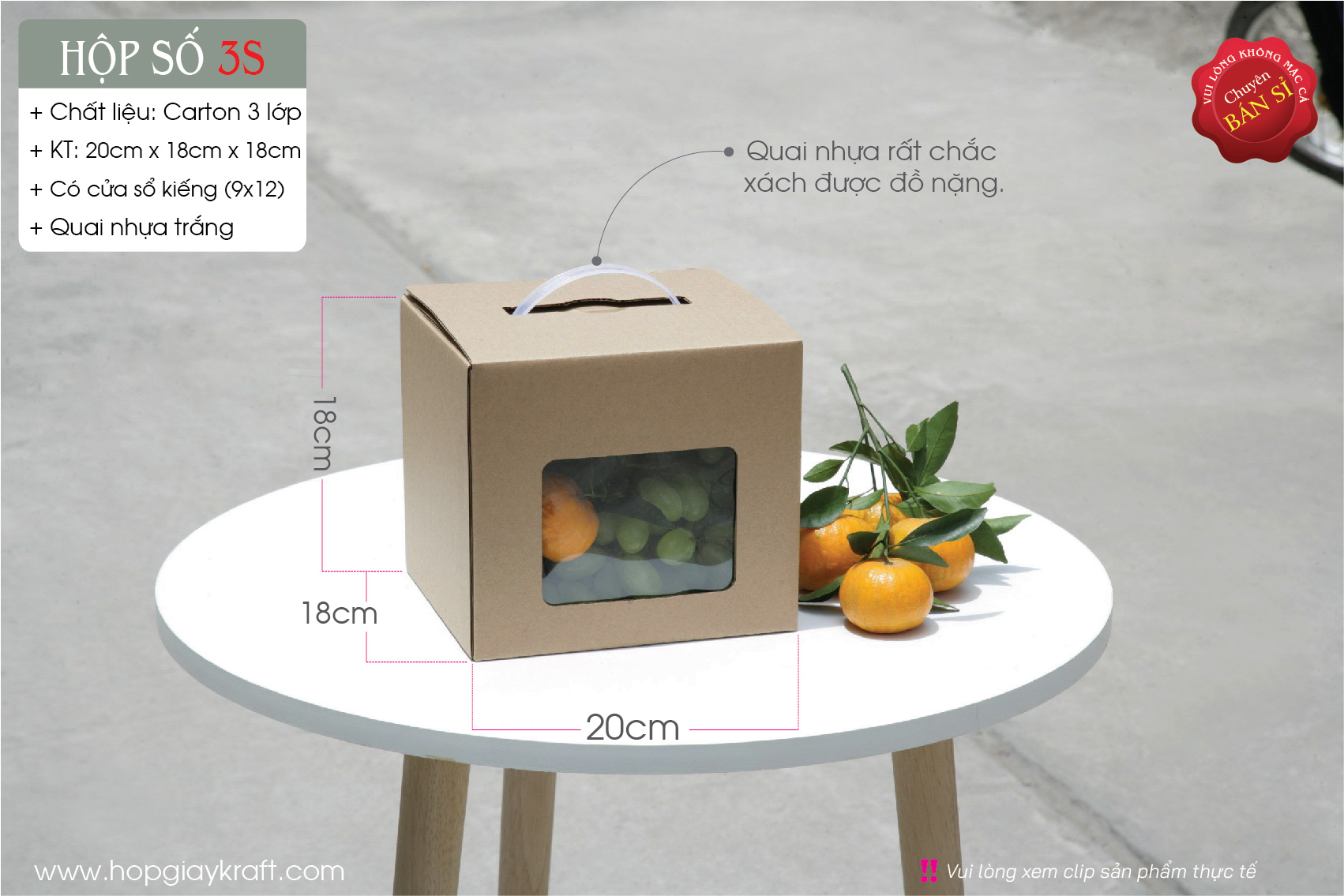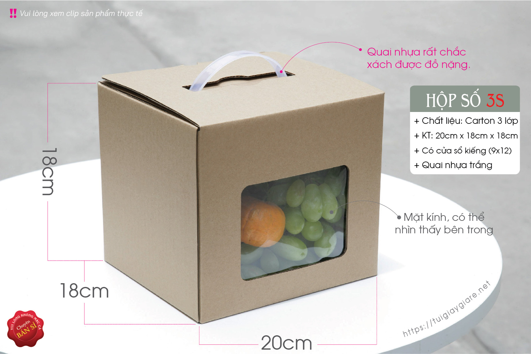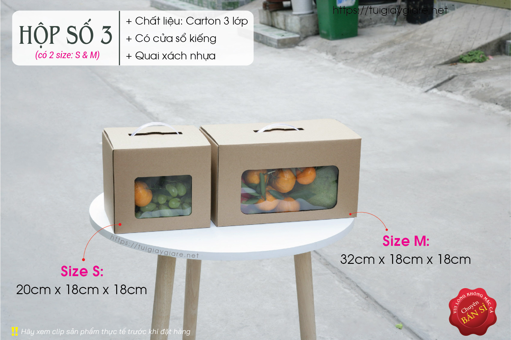 ❁ Hộp size S: 20cm x 18cm x 18cm (ngang x cao x hông) – Cửa sổ mica: 7.5cm x 16cm 💲 Giá bán: 8.600 đồng/cái.