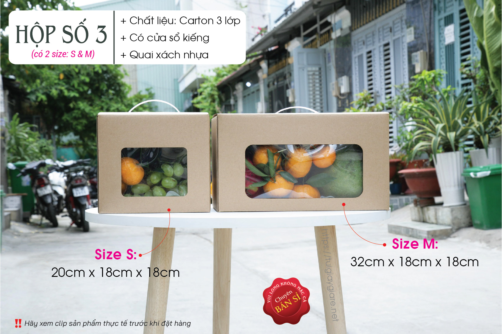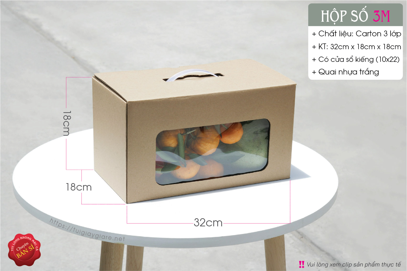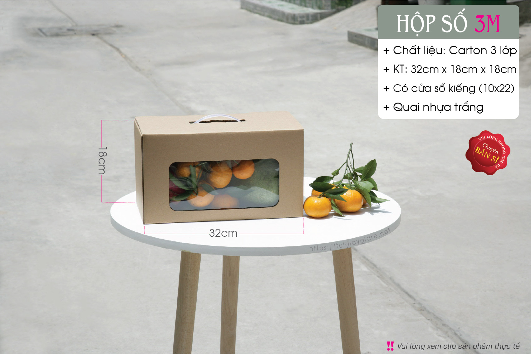 ❁ Hộp size M: 32cm x 18cm x 18cm (cao x ngang x hông) – Cửa sổ mica: 13cm x 16cm 💲 Giá bán: 10.000 đồng/cái.
