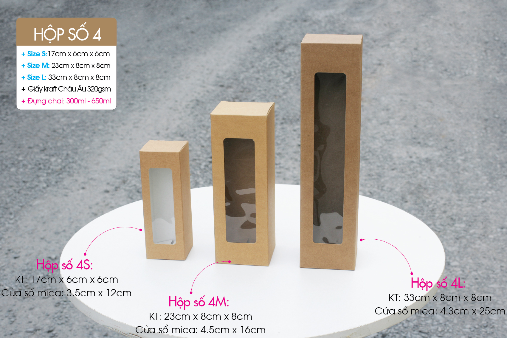 Hộp giấy đứng đựng chai 300ml & 500ml & 750ml – Gồm Hiện có 3 size S, M & L – The single box for bottle