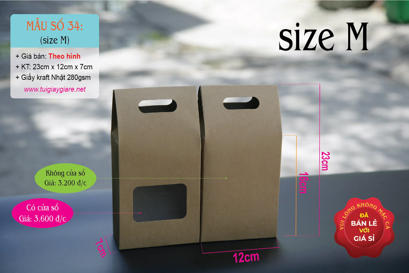 - Size M: 16cm x 12cm x 7cm (đã trừ phần chóp, chứa hàng được) 💲 Giá bán: 3.600 vnđ/c.