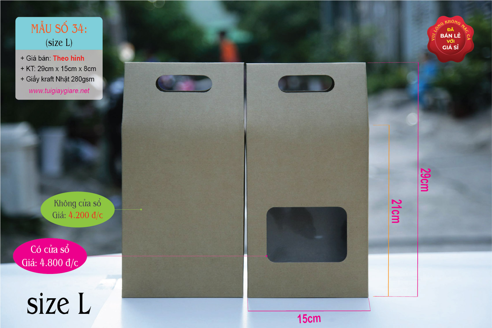 - Size L: 20.8cm x 15cm x 8cm (đã trừ phần chóp, chứa hàng được) 💲 Giá bán: 4.800 vnđ/c.