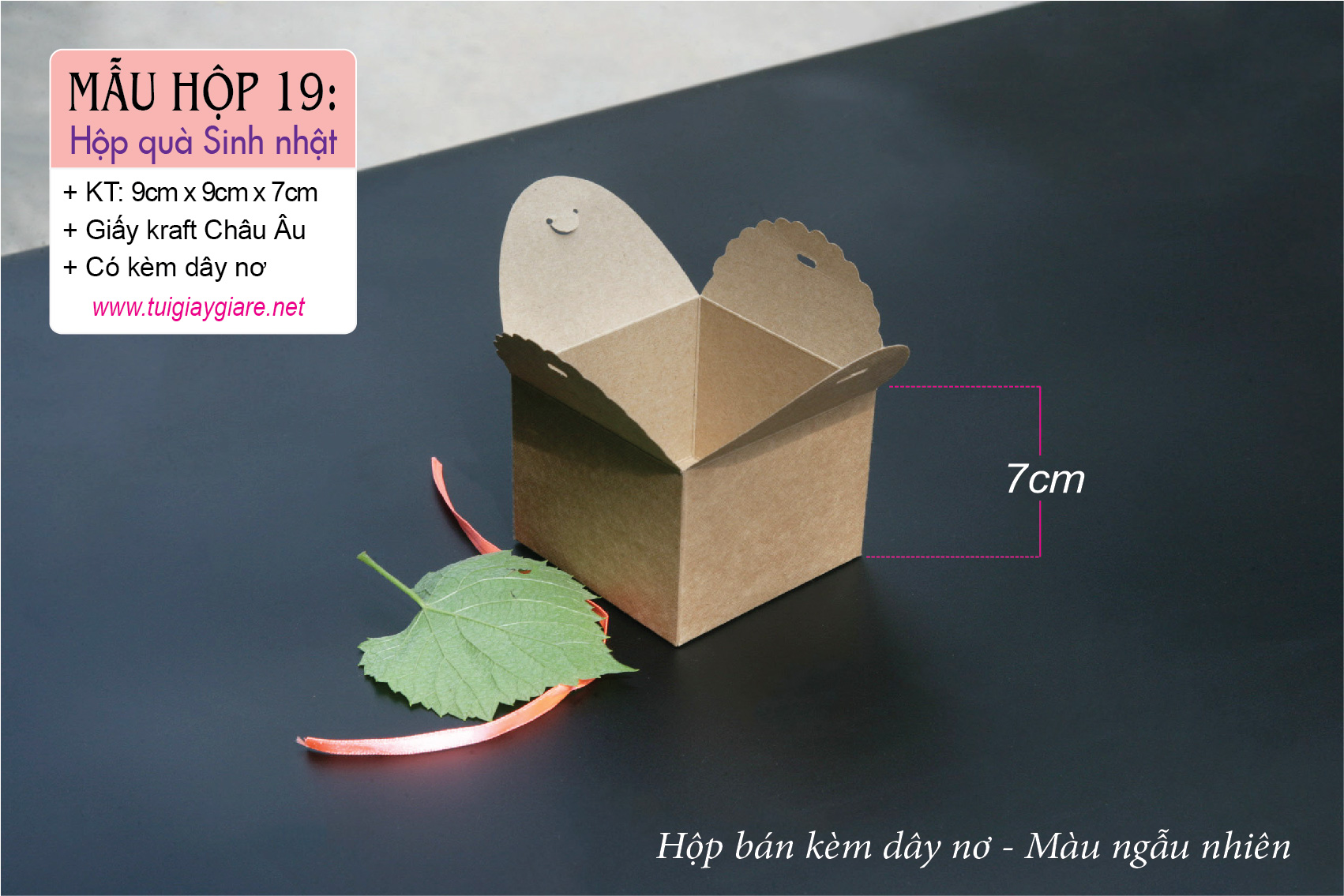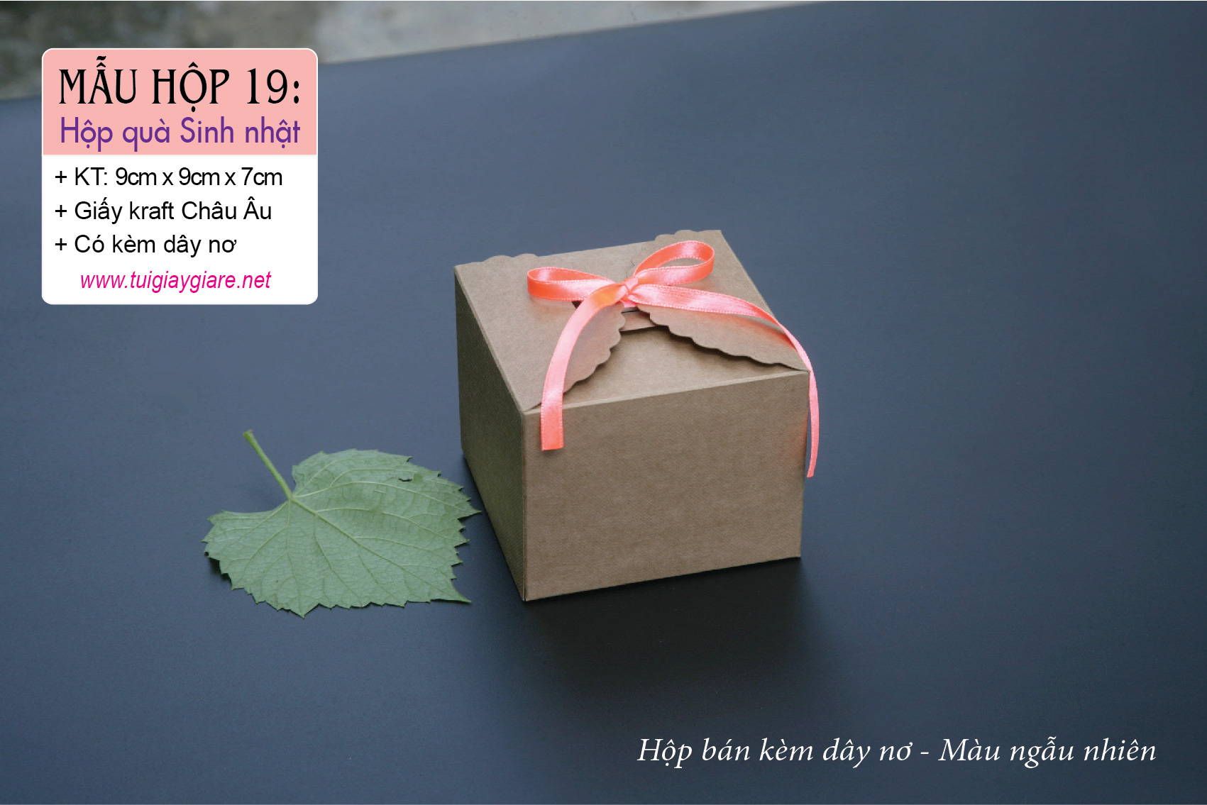 Hộp quà sinh nhật – Giấy kraft – Kèm dây ruy băng thắc nơ