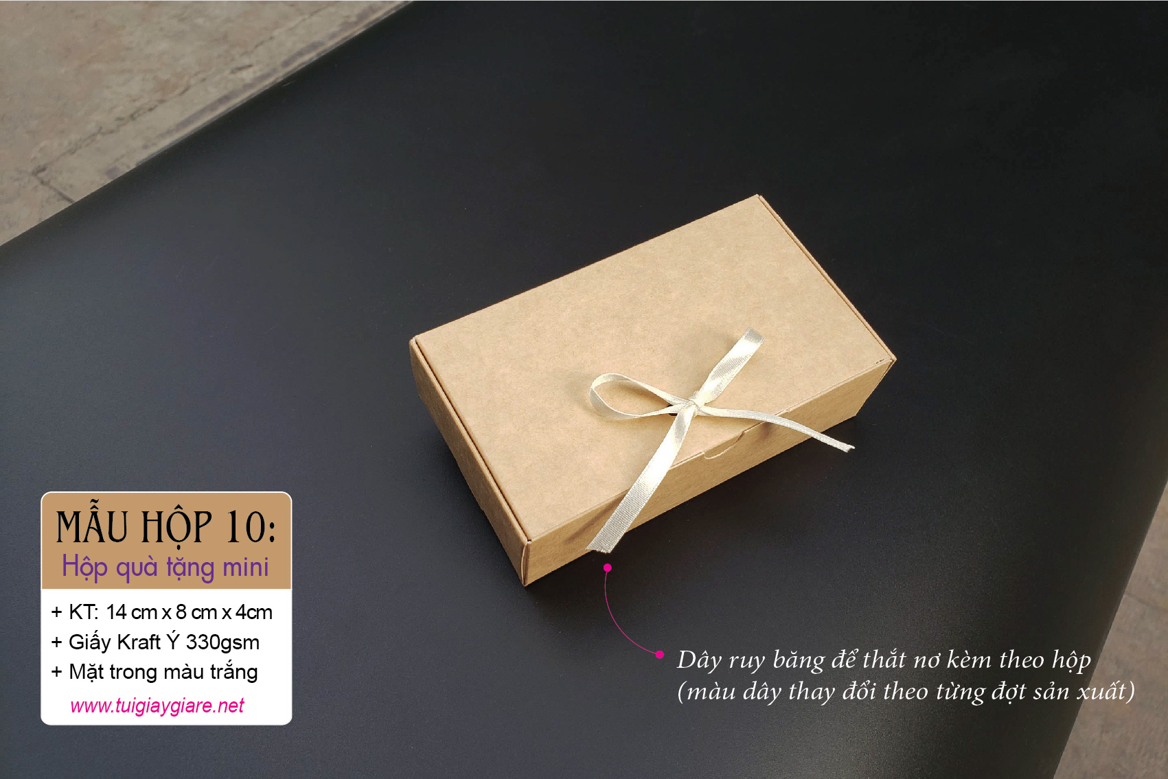 **Dây ruy băng dùng thắt nơ kèm theo hộp nhưng màu dây có thể thay đổi tùy theo từng đợt sản xuất.