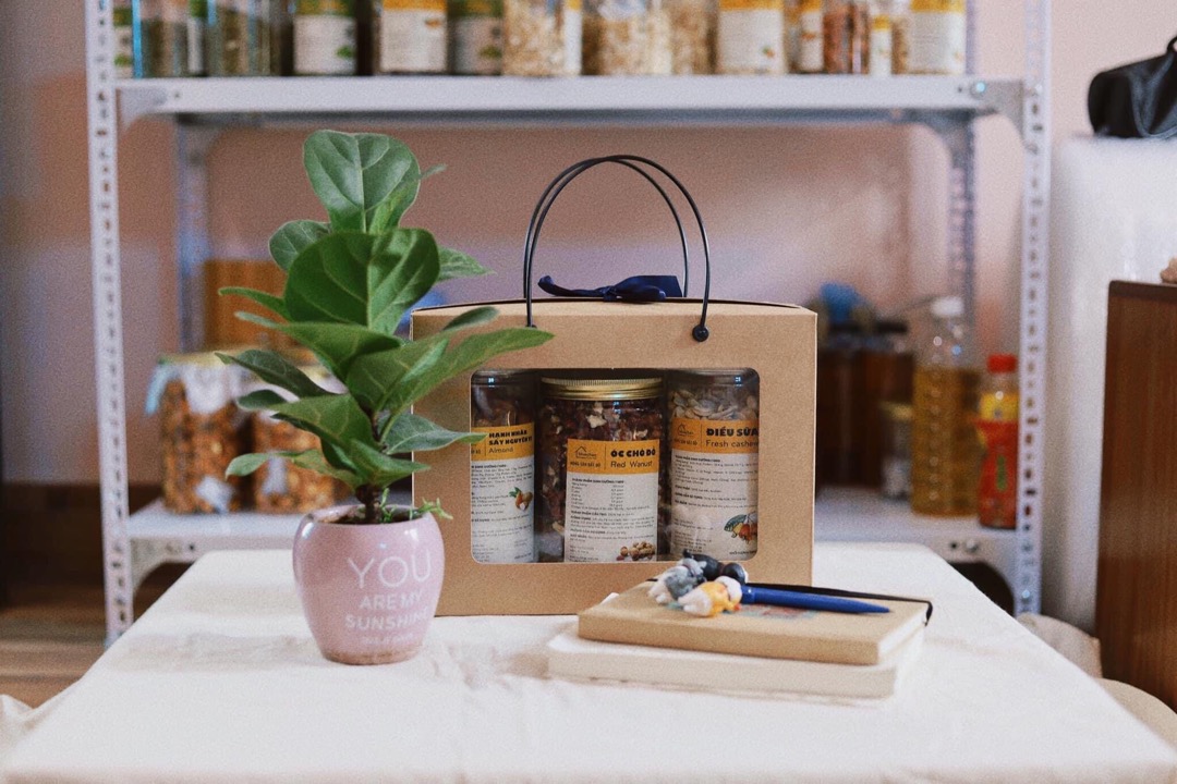 Hộp thức ăn vặt – đựng quà Tết – bánh mứt , thực phẩm – đựng khô heo, khô gà, khô mực, hạt điều, đậu phộng. 3 hủ nhựa nắp nhôm 1.200ml hoặc 6 hủ 500ml sản túi giấy chợ lớn