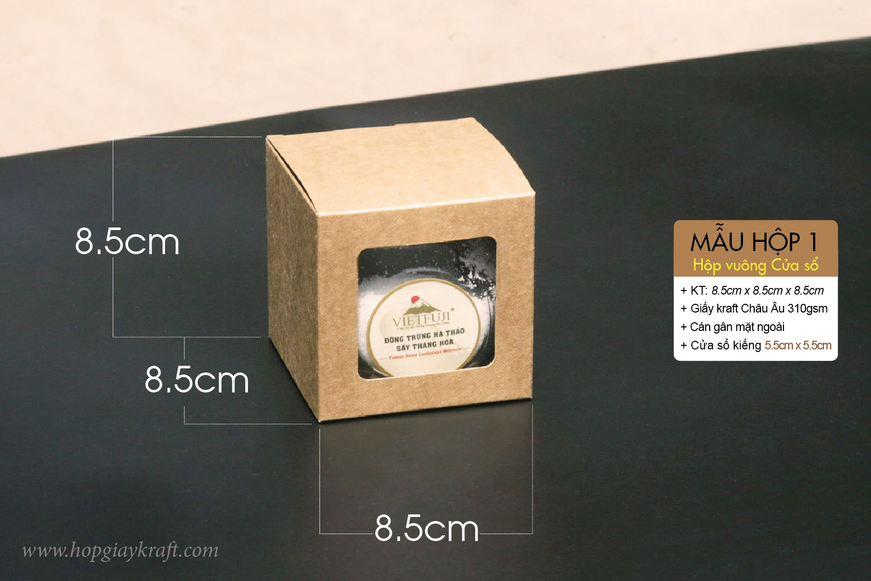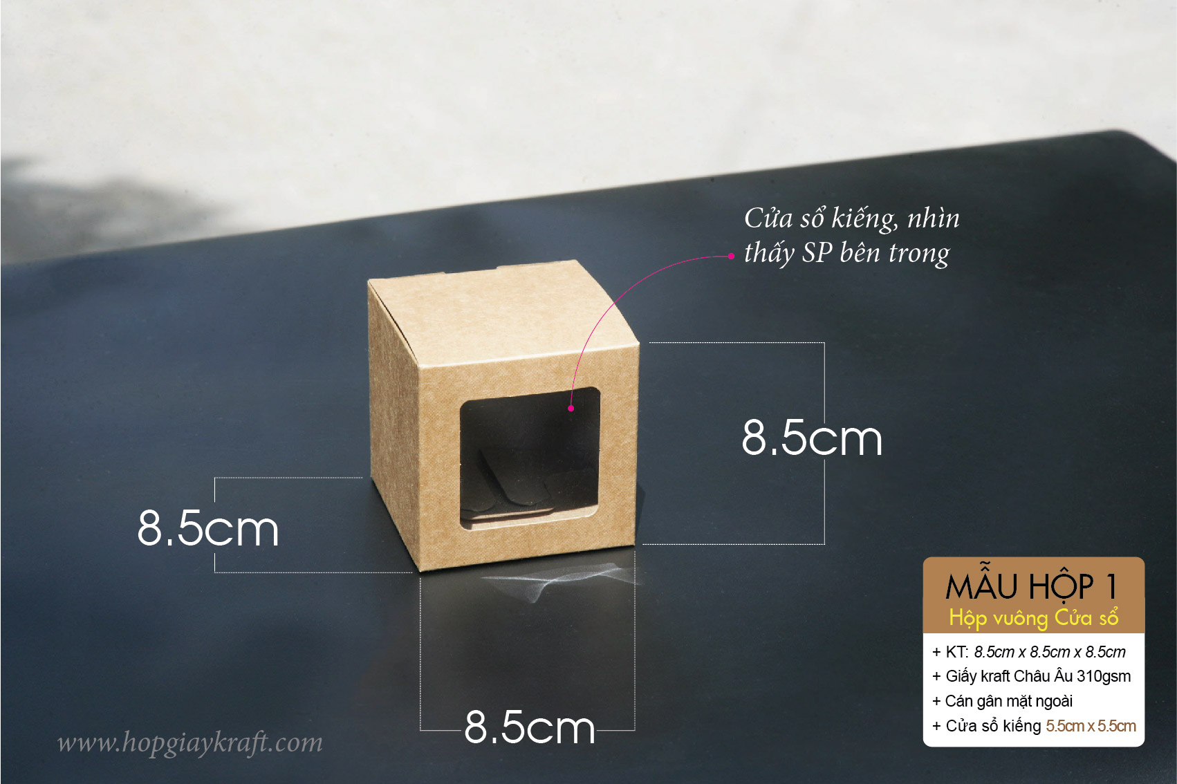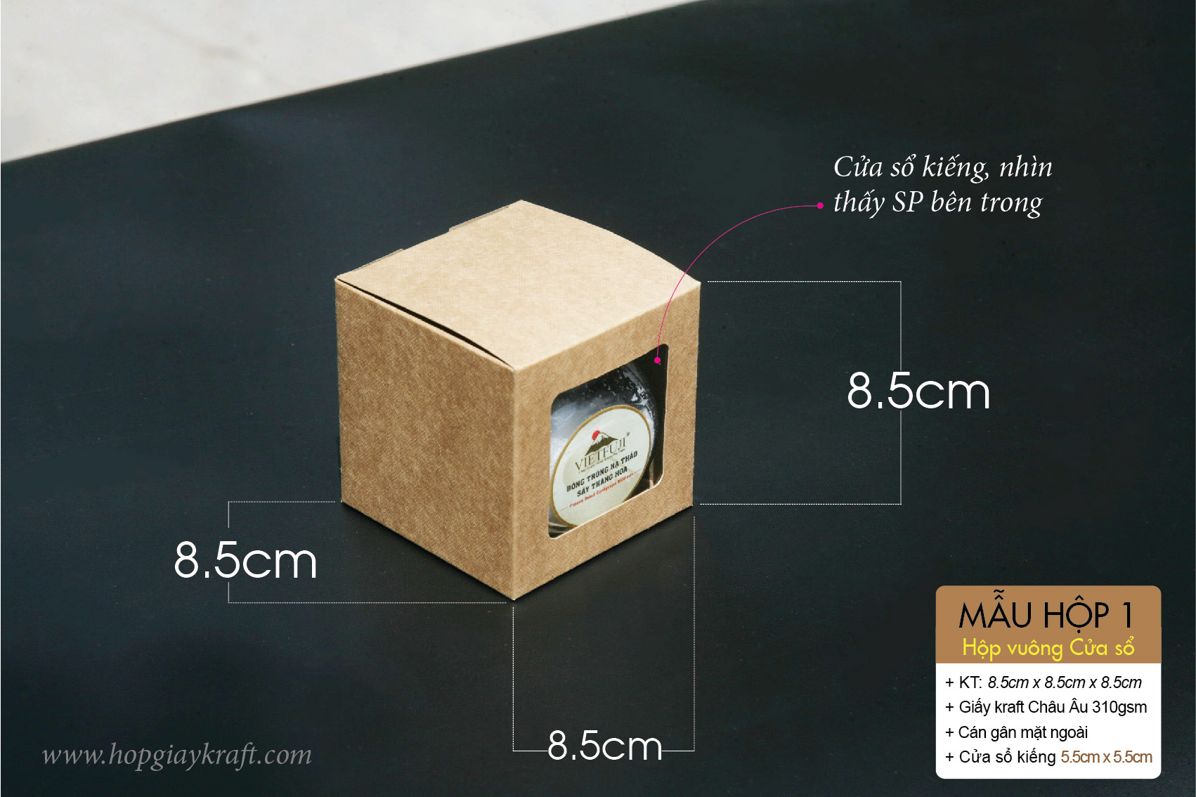 Hộp vuông cửa sổ – Hộp giấy kraft vuông có cửa sổ kiếng (support)