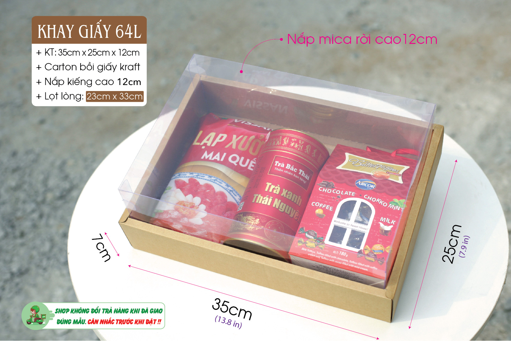 ❇❇ Khay thích hợp đựng quà tặng, trái cây hoặc những phần quà lưu niệm hoặc quà Tết. Ngoài ra shop có bán Túi giấy số 64, đựng vừa hộp này.