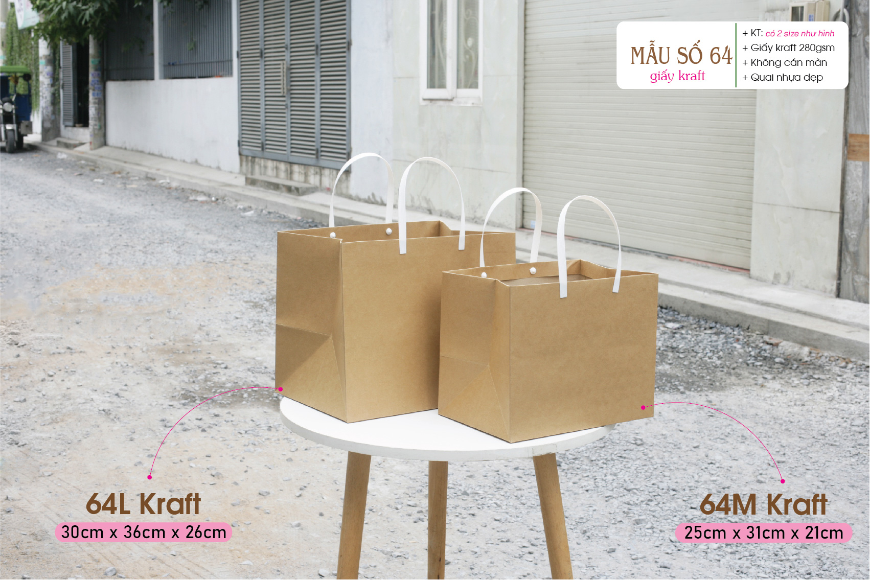 + Có 2 chất liệu: Giấy Ivory 300gsm (loại có in) hoặc Giấy kraft 280gsm (loại không in).