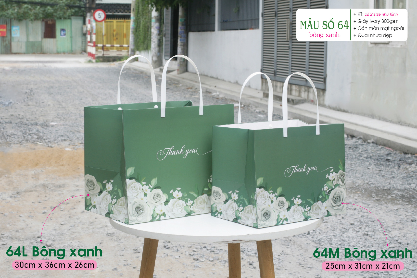 ❇❇ Túi có phần hông to, thích hợp để đựng những loại khay hoặc hộp sản phẩm, hộp quà có kích thước lớn. Ngoài ra shop có bán Hộp quà số 64, đựng vừa với túi này.