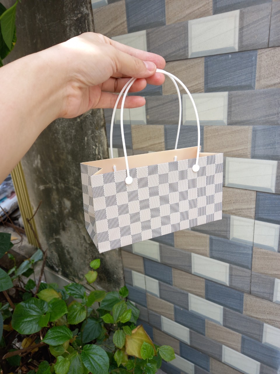 - Túi được làm bằng giấy Couche’ 230gsm. Với những chiếc túi giấy kích thước nhỏ, sử dụng nguyên liệu giấy Couche là một sự lựa chọn tuyệt vời.
