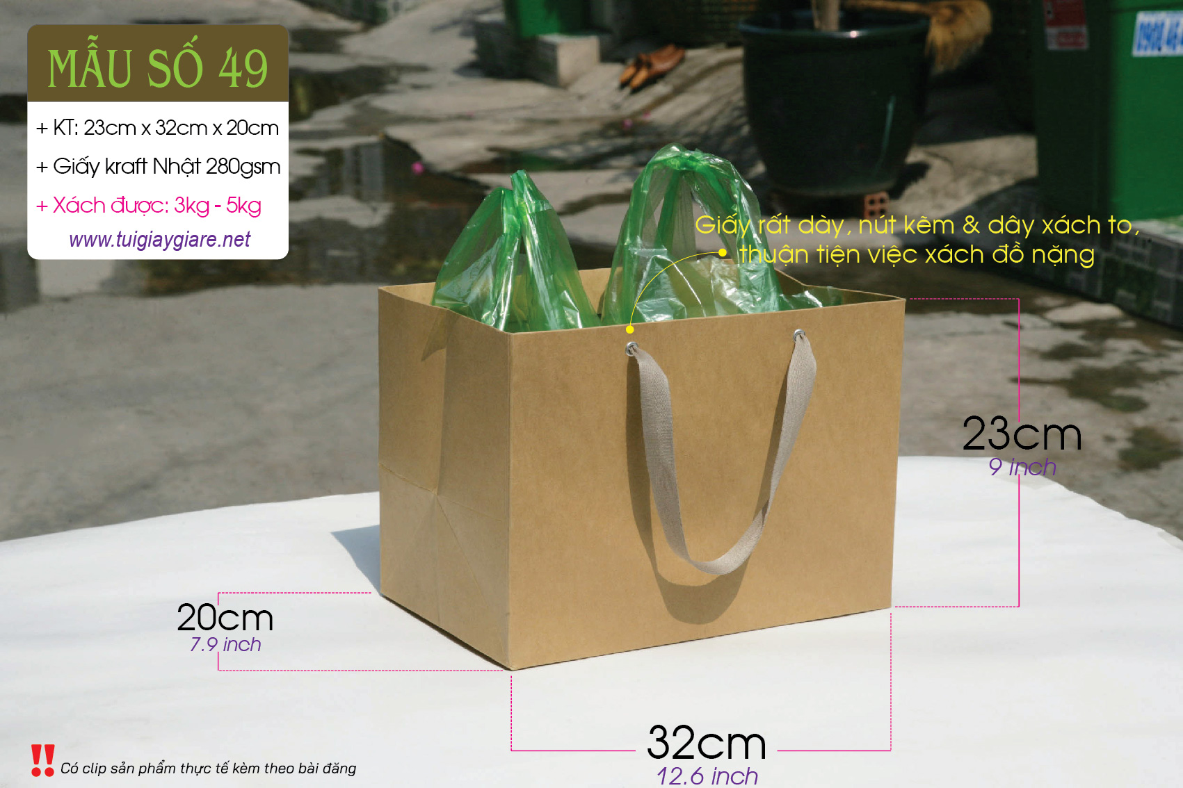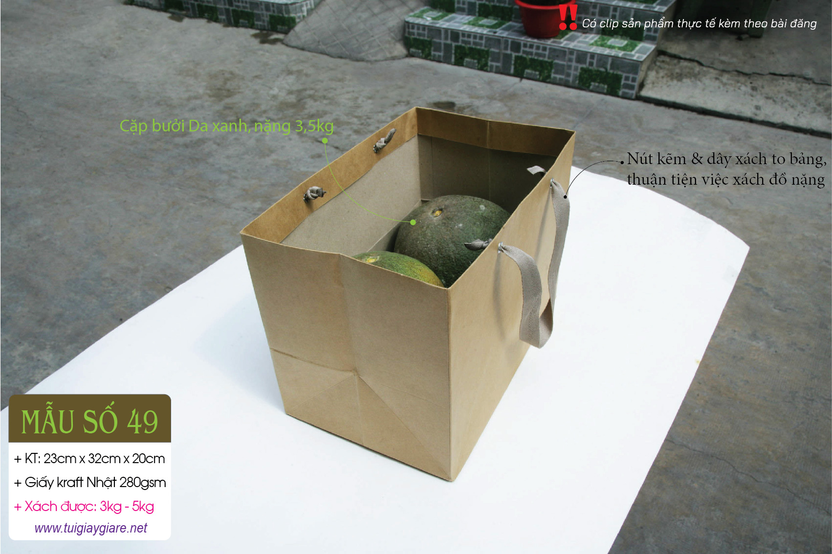 Túi giấy thích hợp đựng trái cây, hàng thực phẩm, với kích thước lớn và nặng.