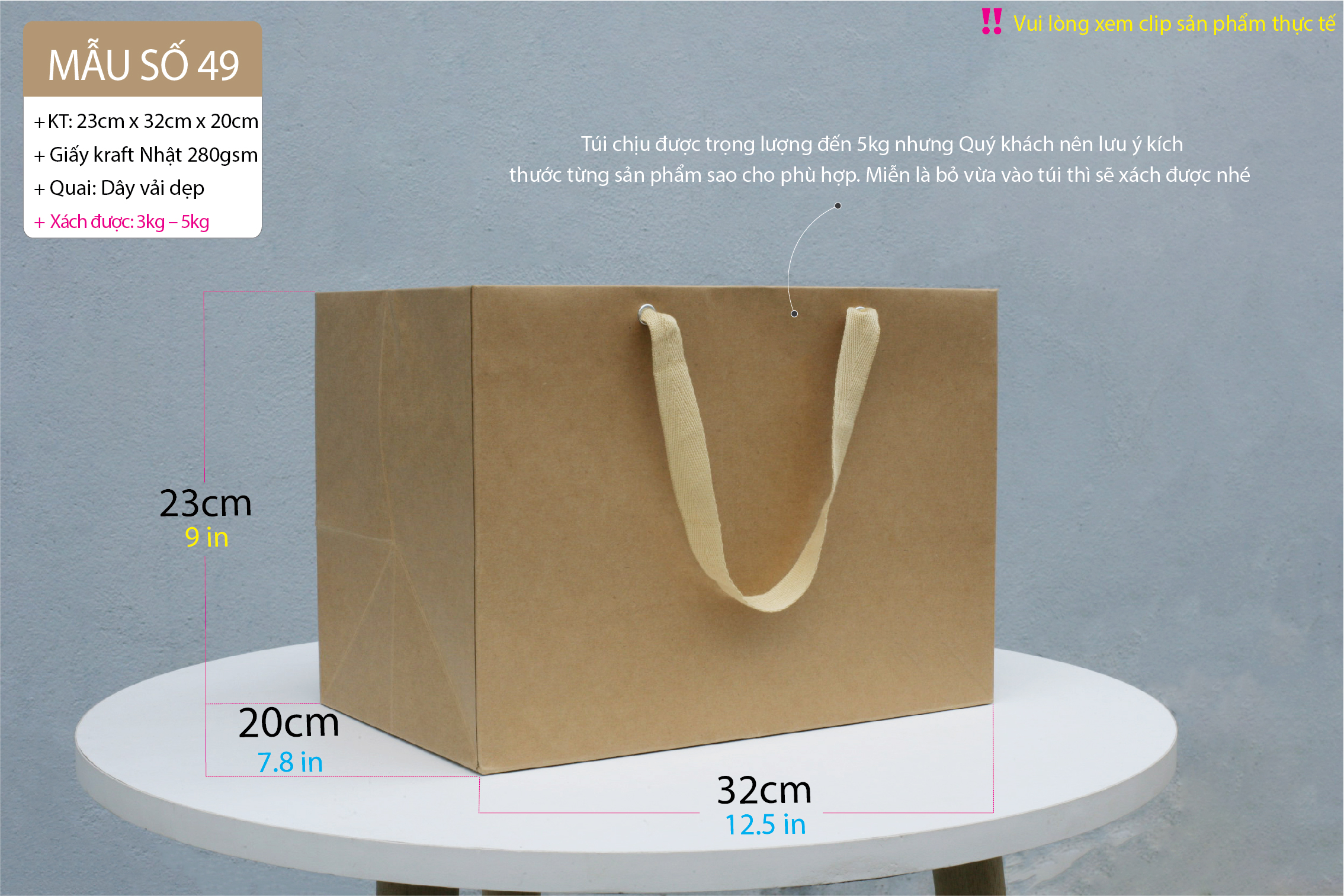 *** Lưu ý: Túi chịu được trọng lượng đến 5kg nhưng Quý khách nên lưu ý kích. thước từng sản phẩm sao cho phù hợp. Miễn là bỏ vừa vào túi thì sẽ xách được nhé !