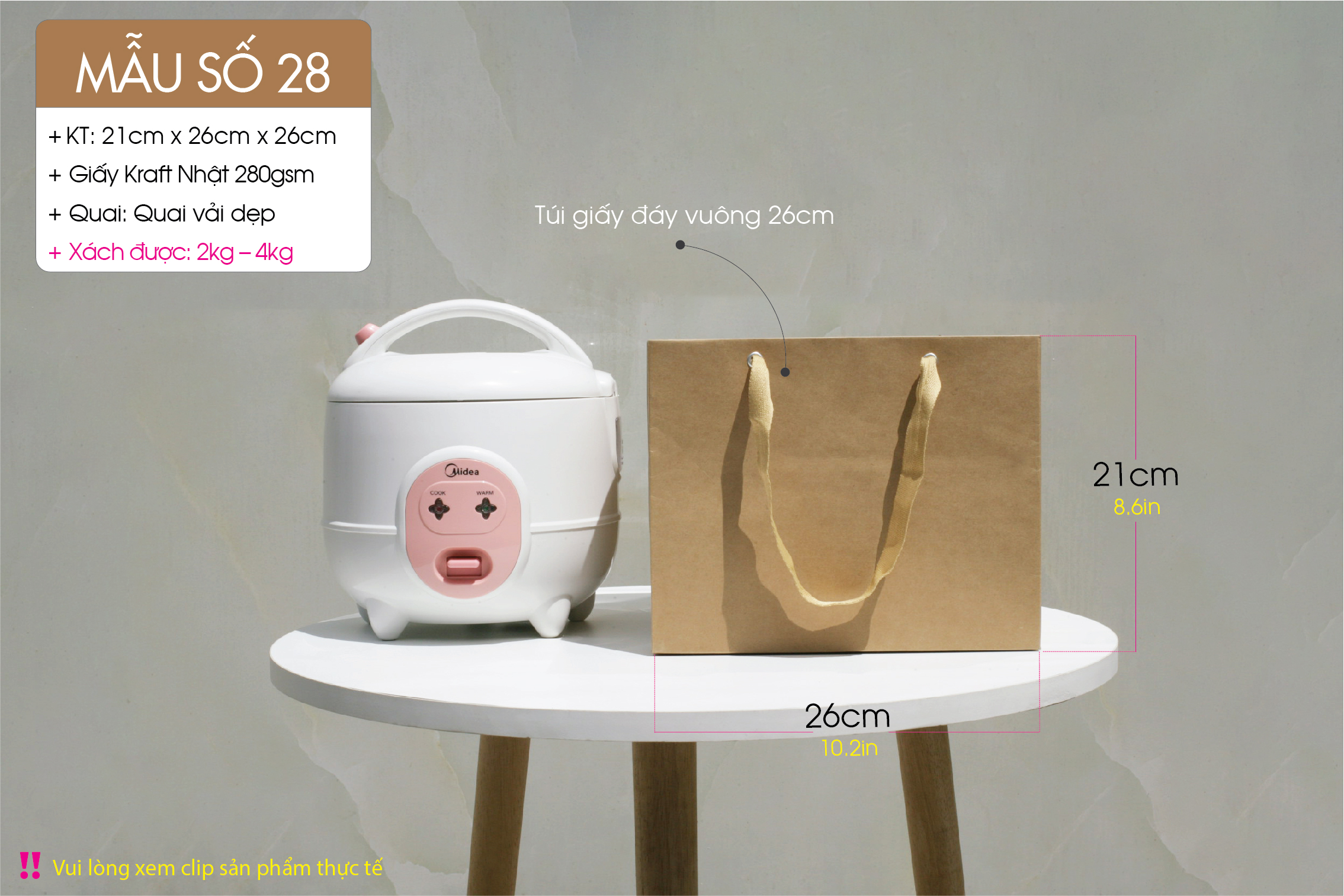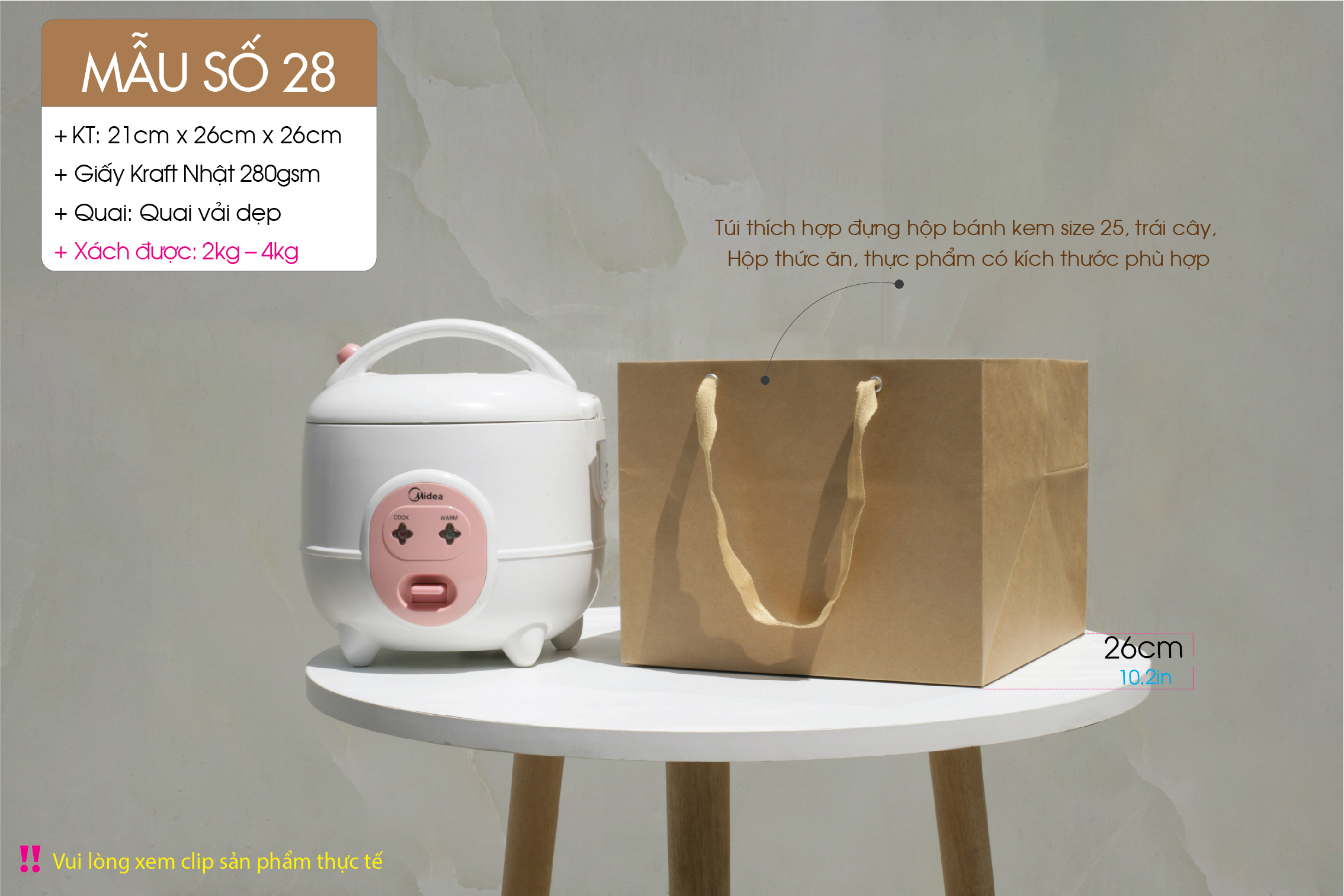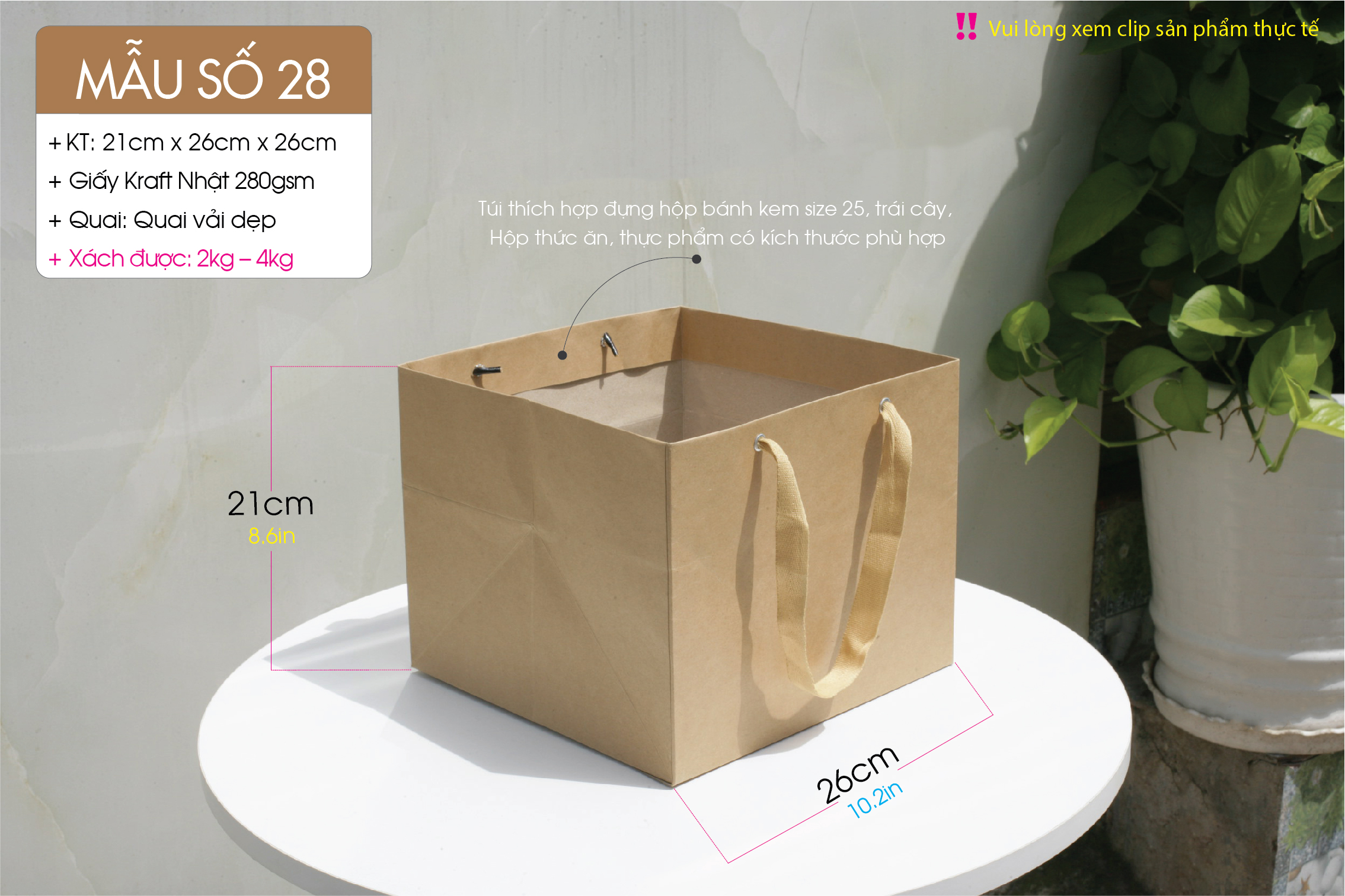 Túi đáy vuông 26cm đựng hộp bánh kem size 25, trái cây, Hộp thức ăn, thực phẩm có kích thước phù hợp