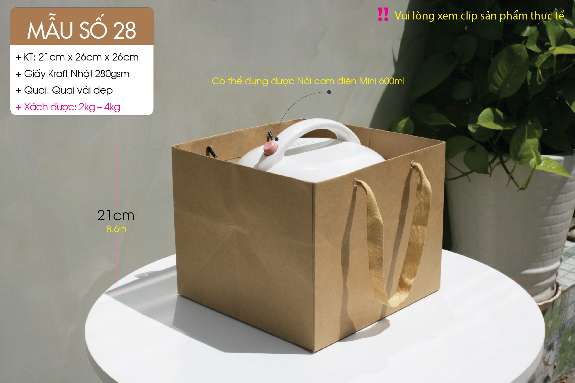 Túi giấy đáy vuông 26cm đựng hộp bánh kem, bánh bông lan, trái cây, hộp thức ăn