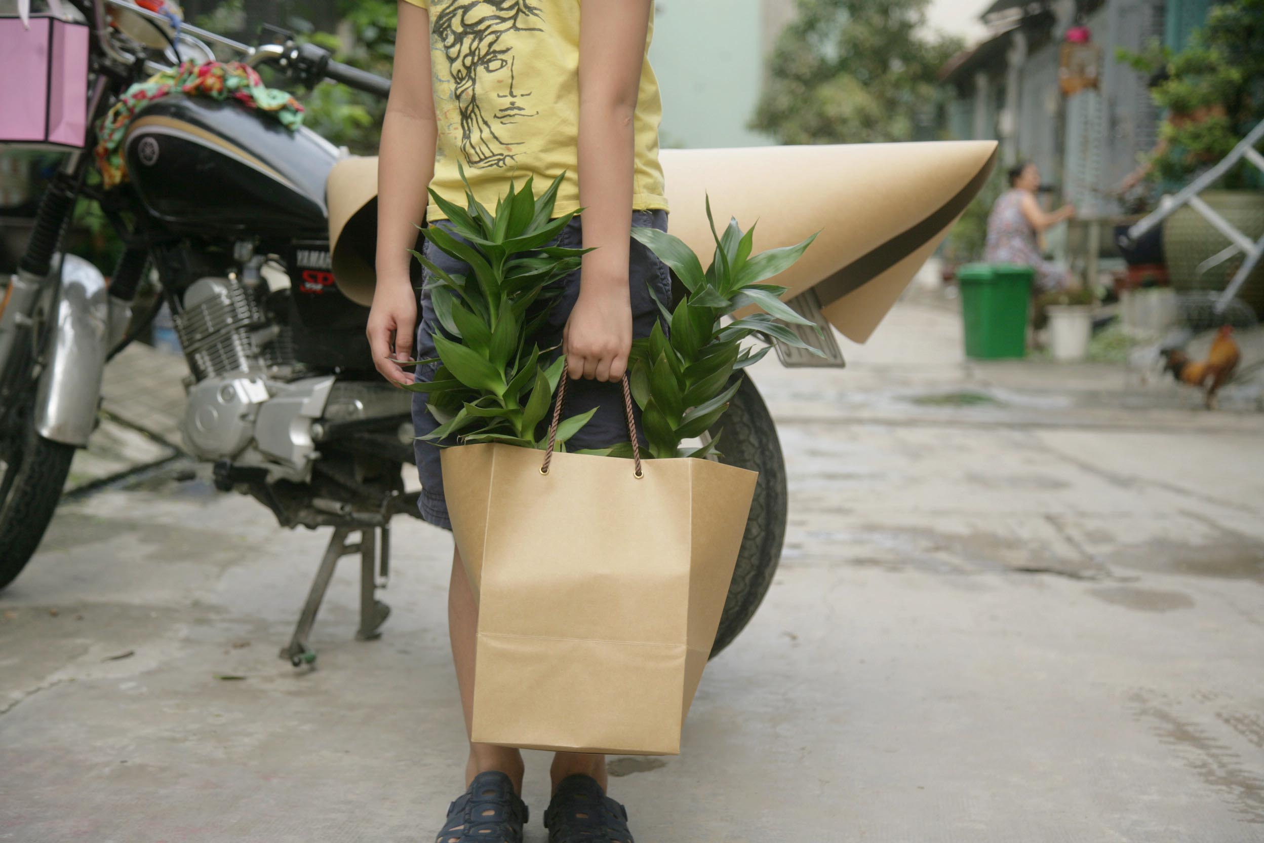 Túi giấy phù hợp chứa quà tặng, thực phẩm, chậu cây… nặng kích thước lớn.