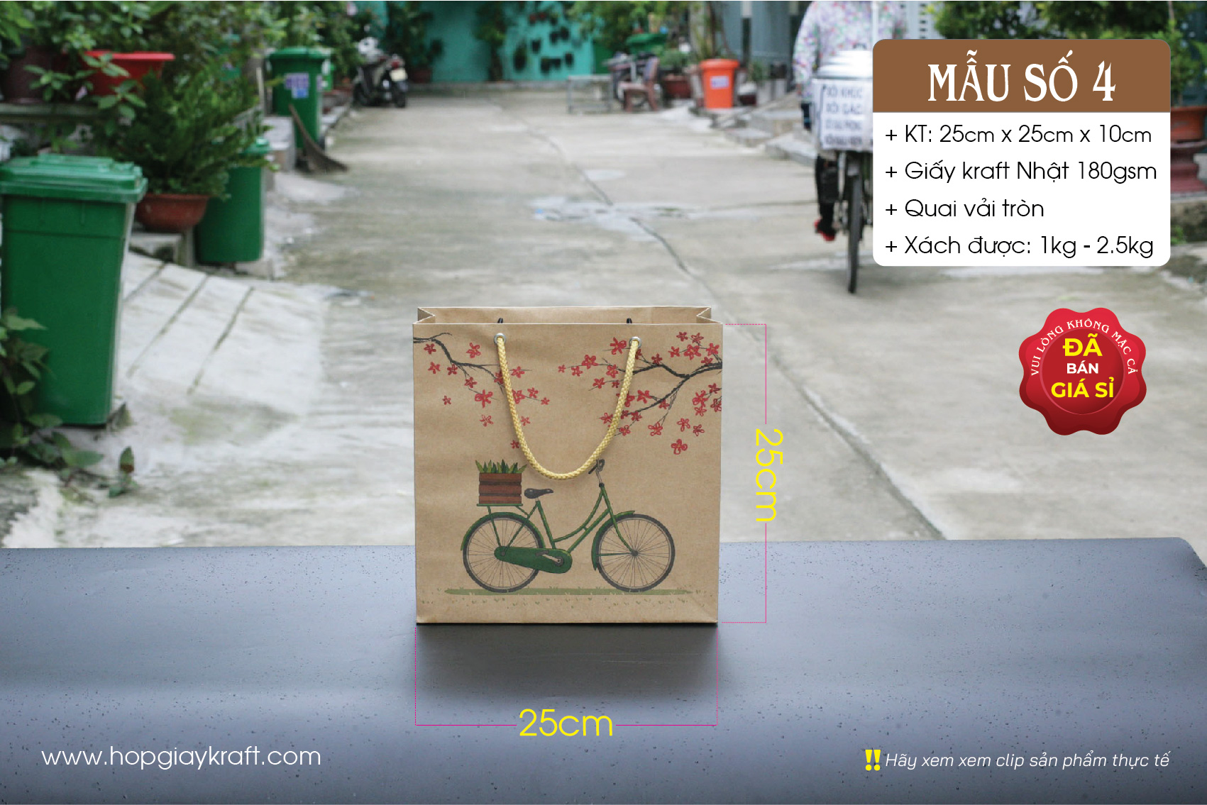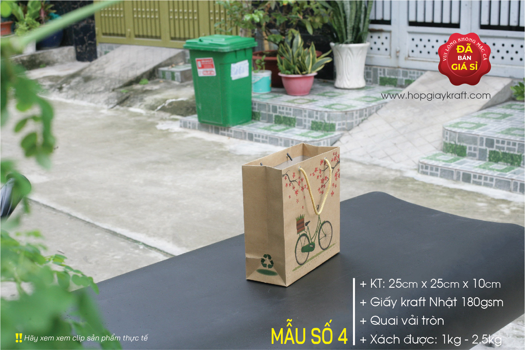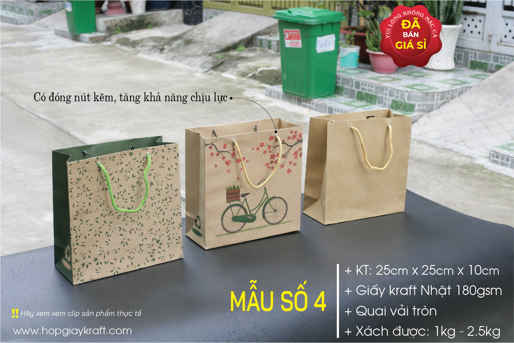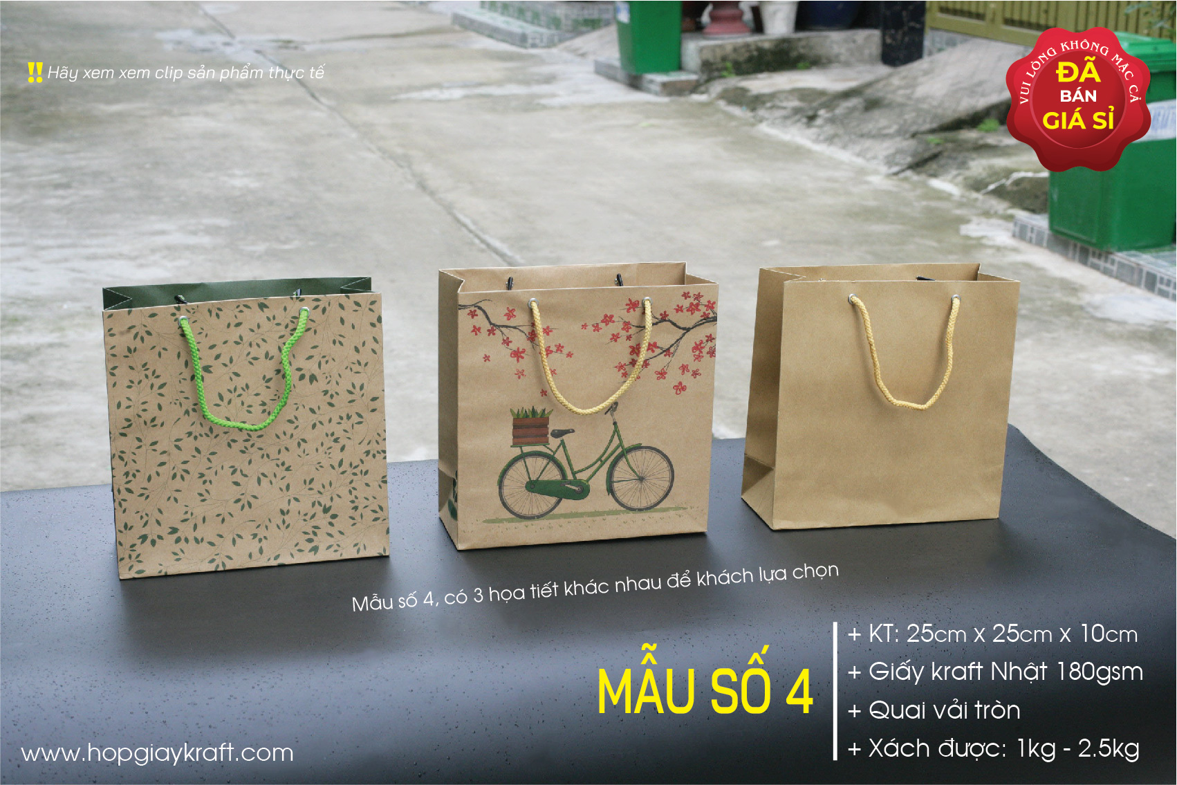 (Túi giấy kraft mẫu số 4, loại có in hoa văn)