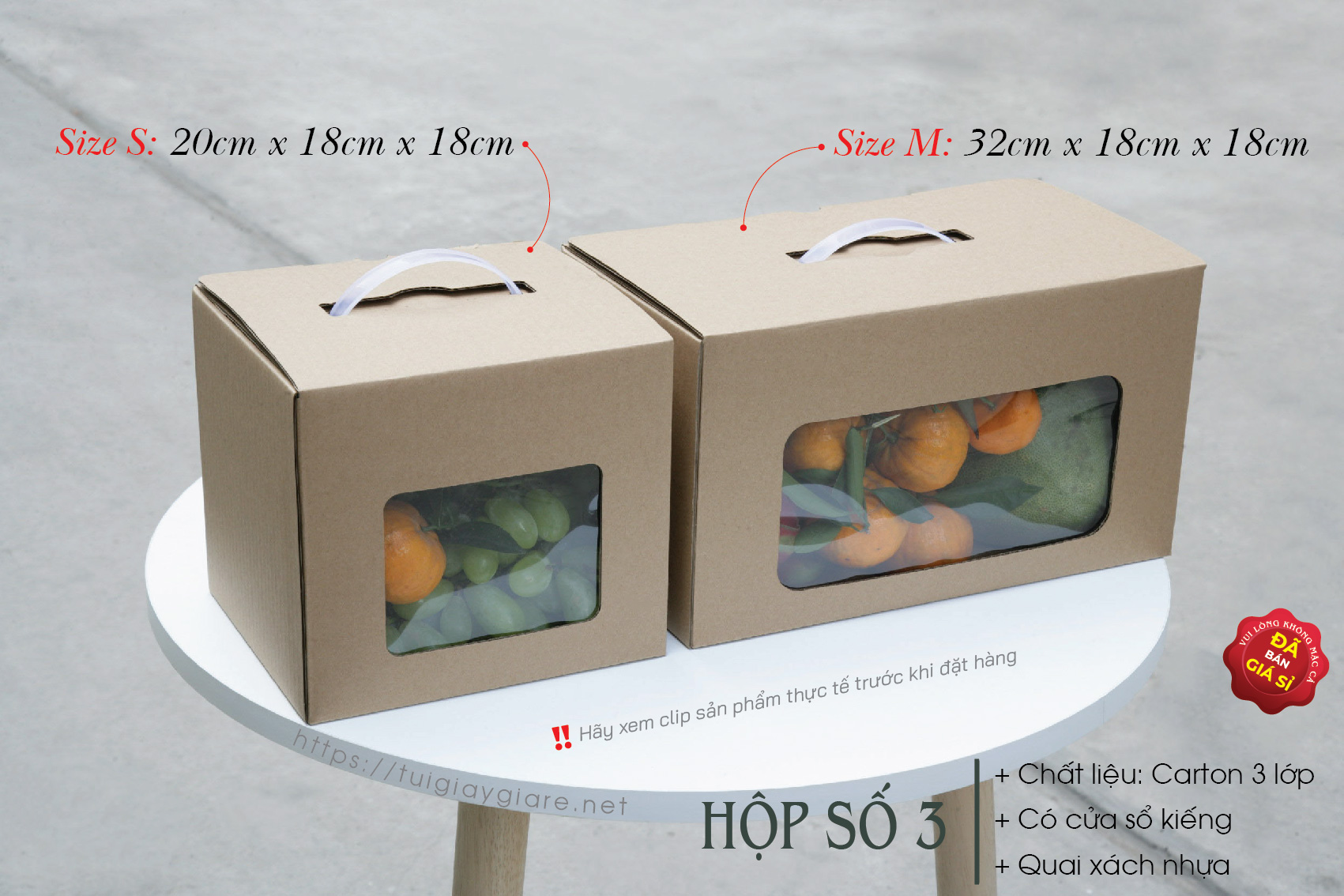- Size S: 12cm x 12cm x 18cm (Mẫu số 45) 💲 Giá bán: 4.000 vnđ/c.