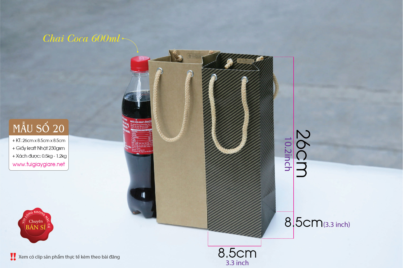 Túi giấy phù hợp đựng mật nho, Mật ong, Hàng thực phẩm, Chai chất lỏng, Nước uống, Quà tặng… Túi đựng được chai Mật ong 1 lít. Nhưng do có nhiều loại mẫu chai khác nhau, nên Quý khách vui lòng do thật kỹ kích thước chai của mình.