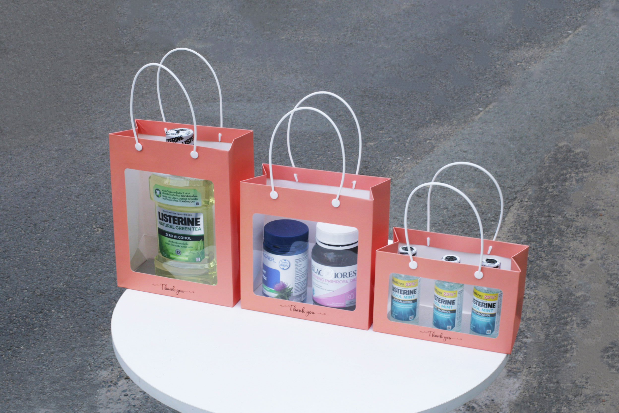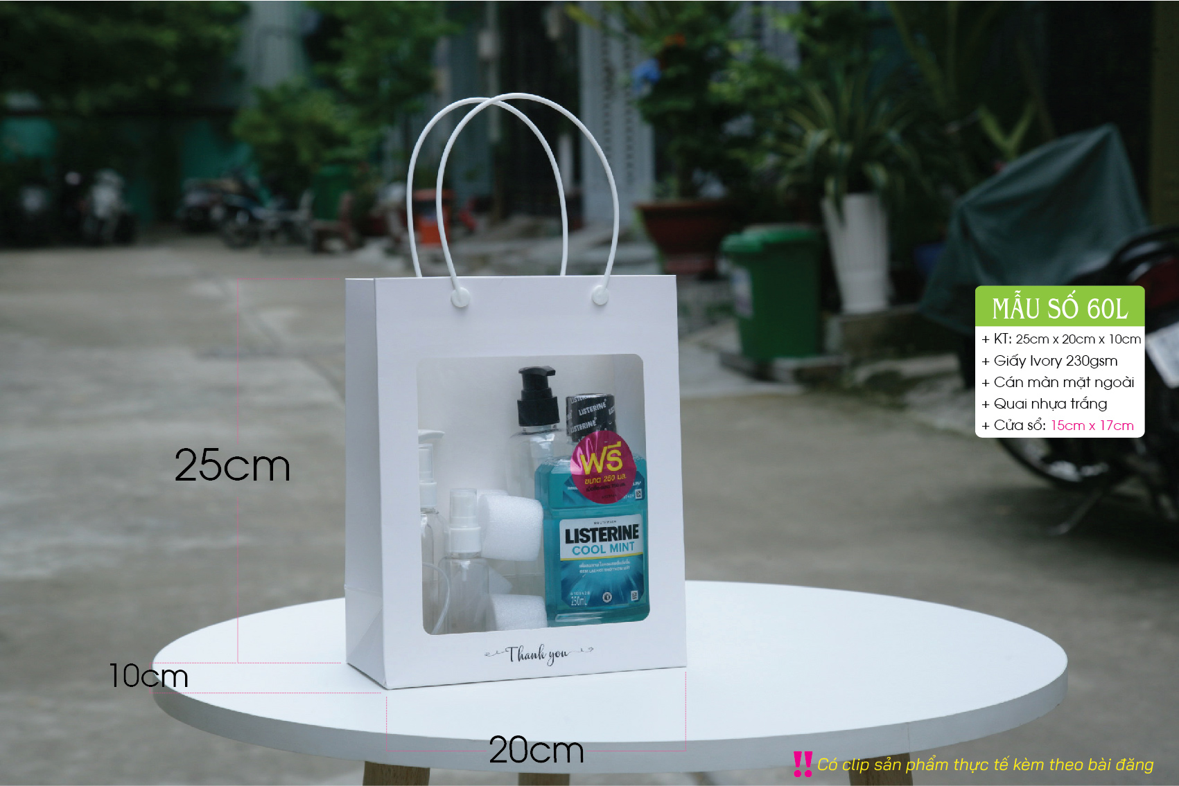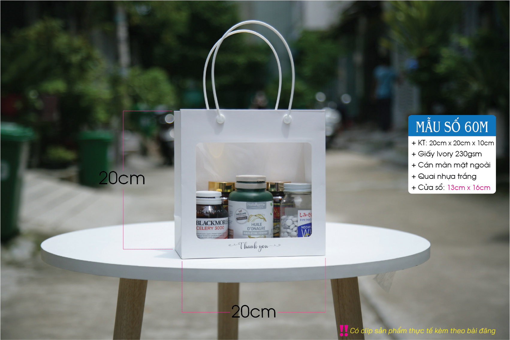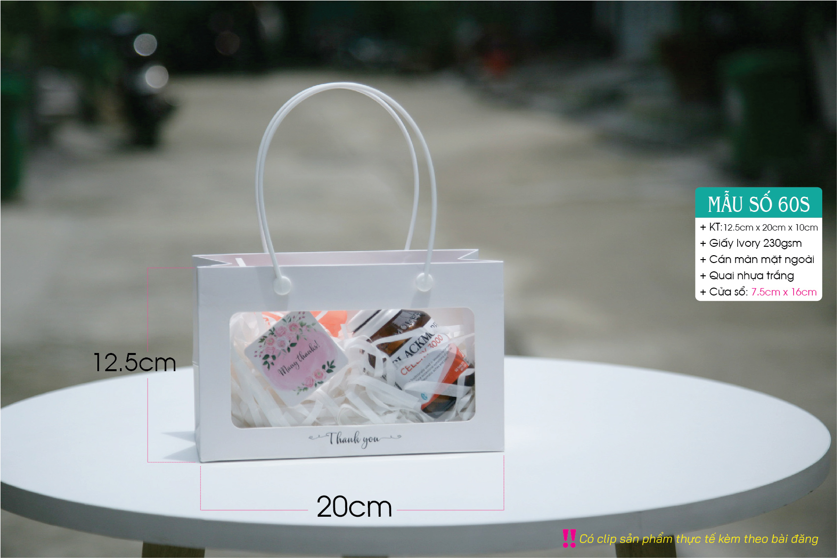 Túi mica trắng – Túi giấy có cửa sổ mica – Gồm 3 size S M L – Paper bag with clear window
