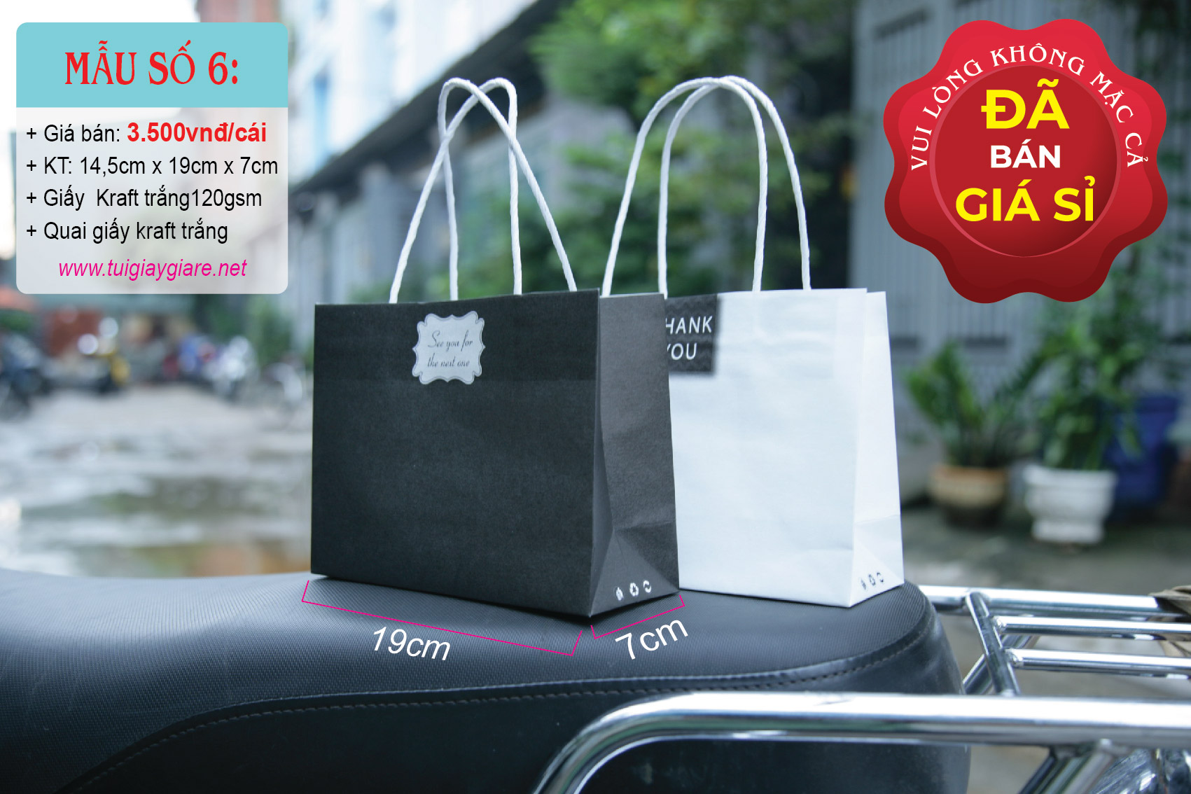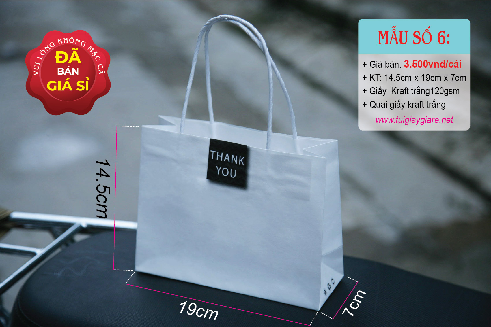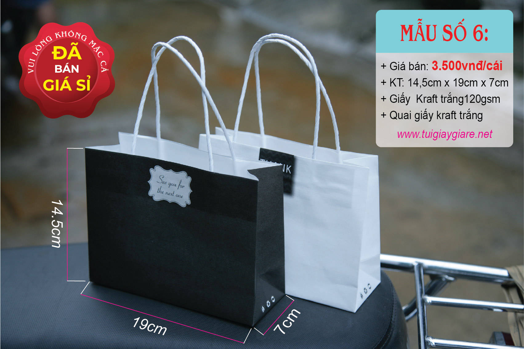 Loại quai: Quai giấy kraft trắng.