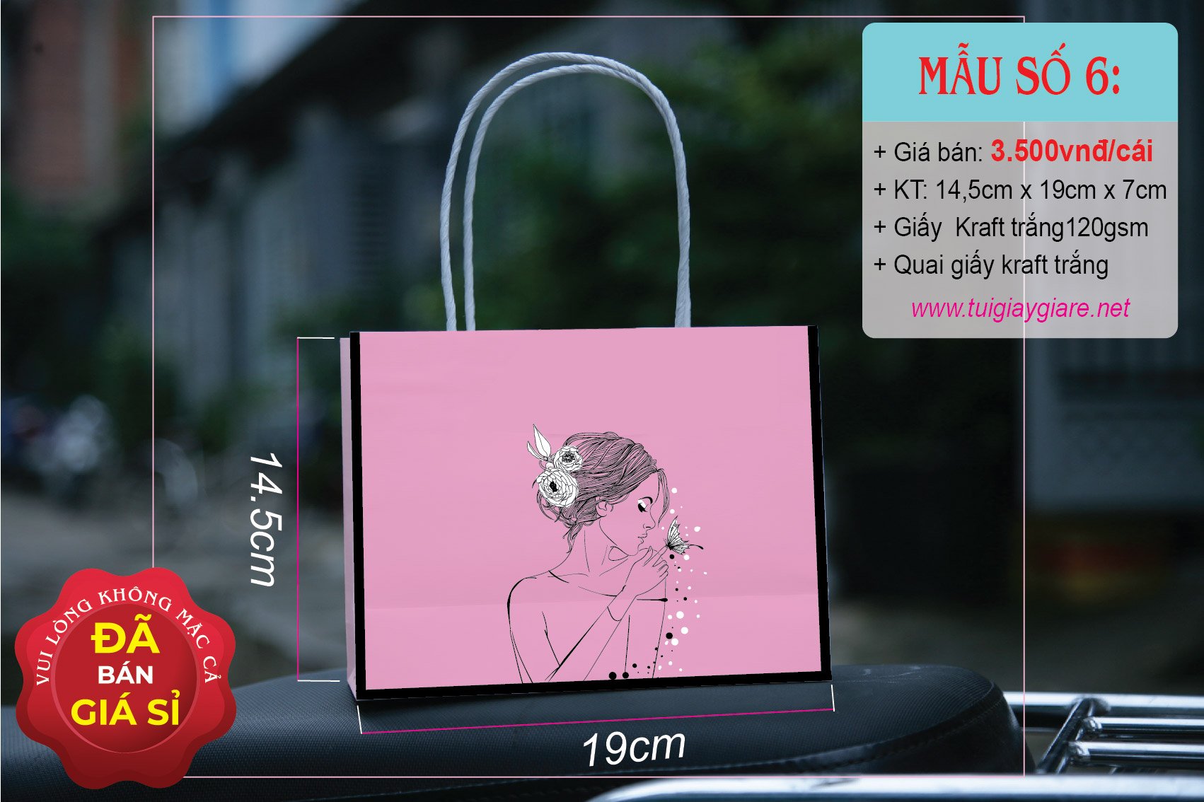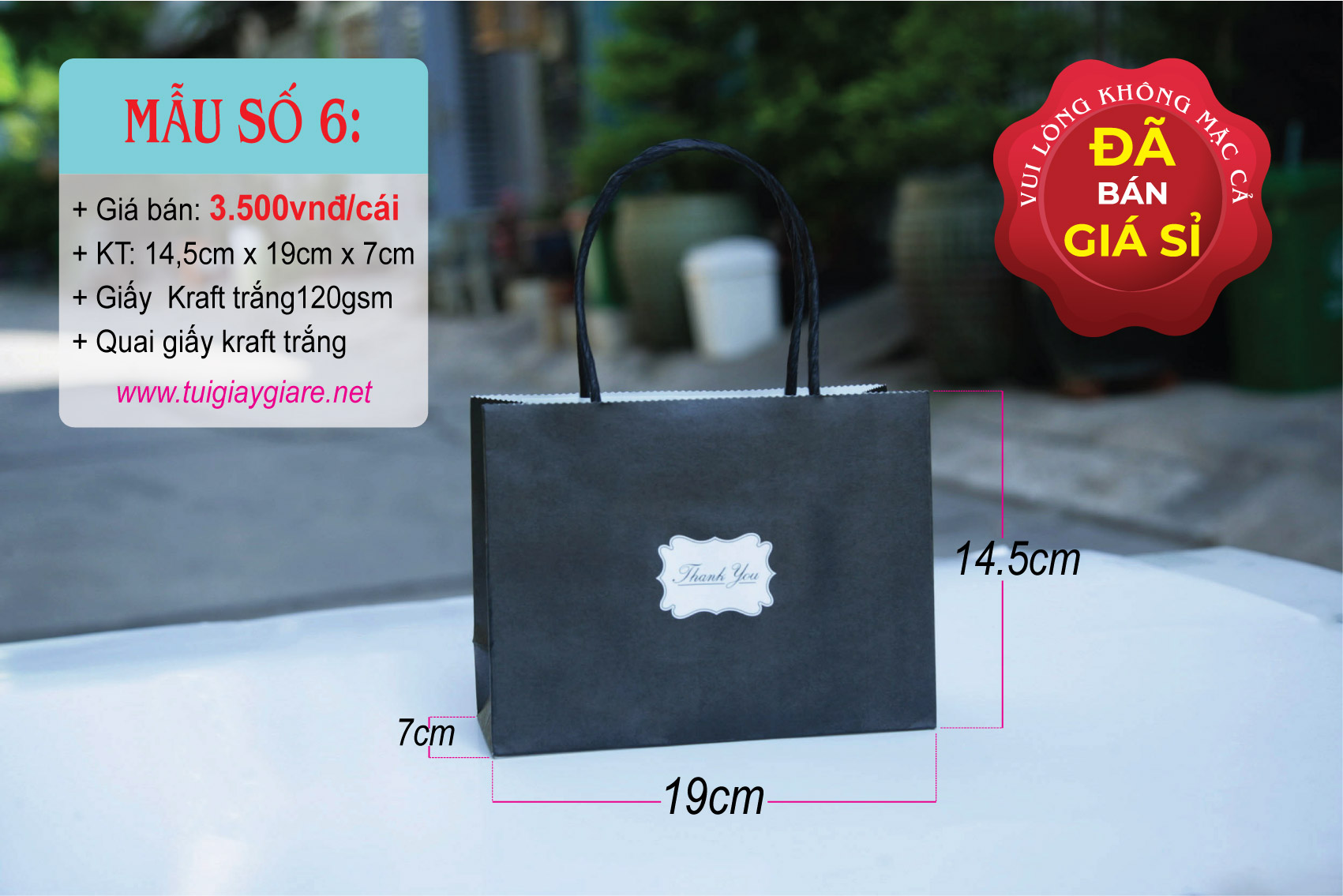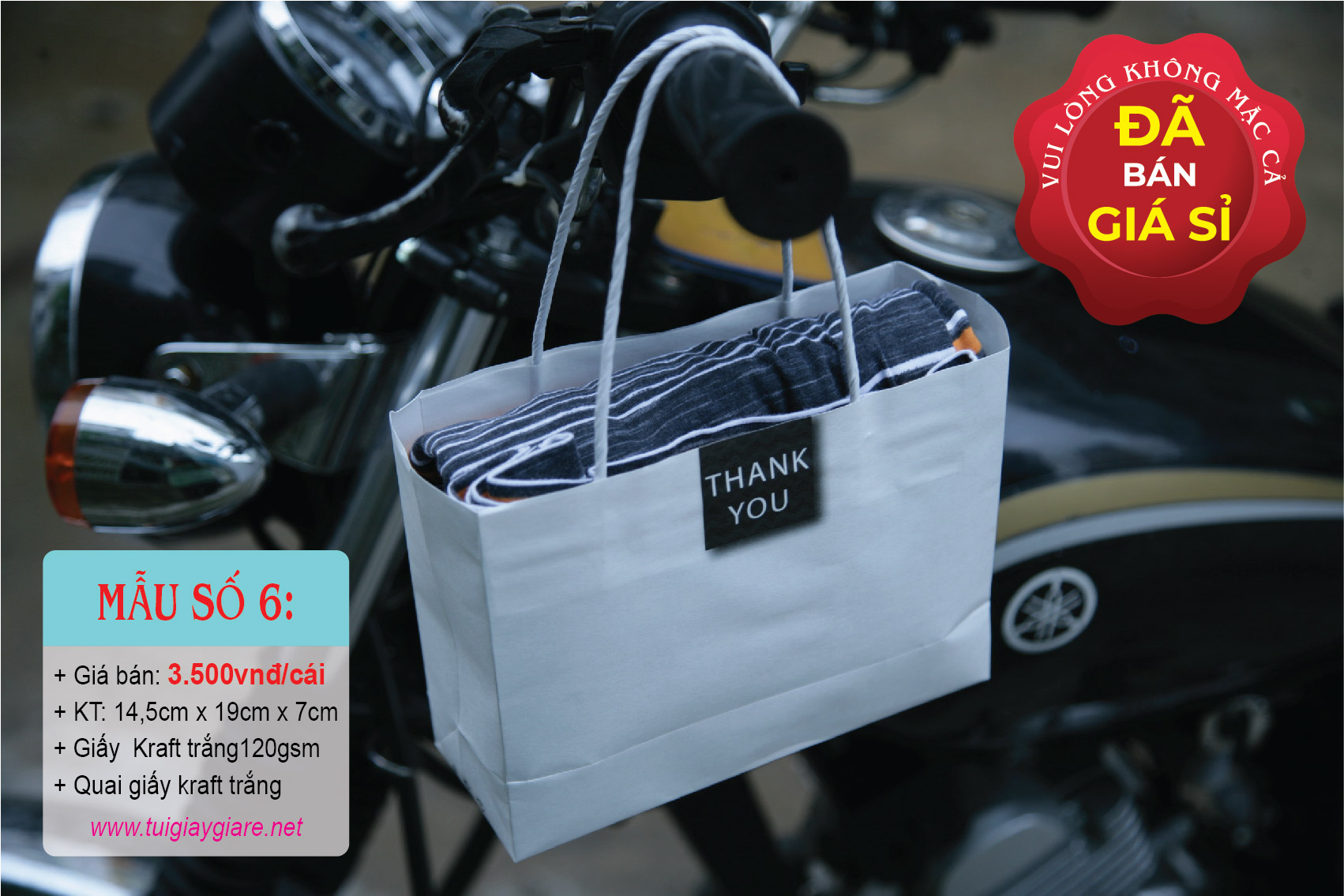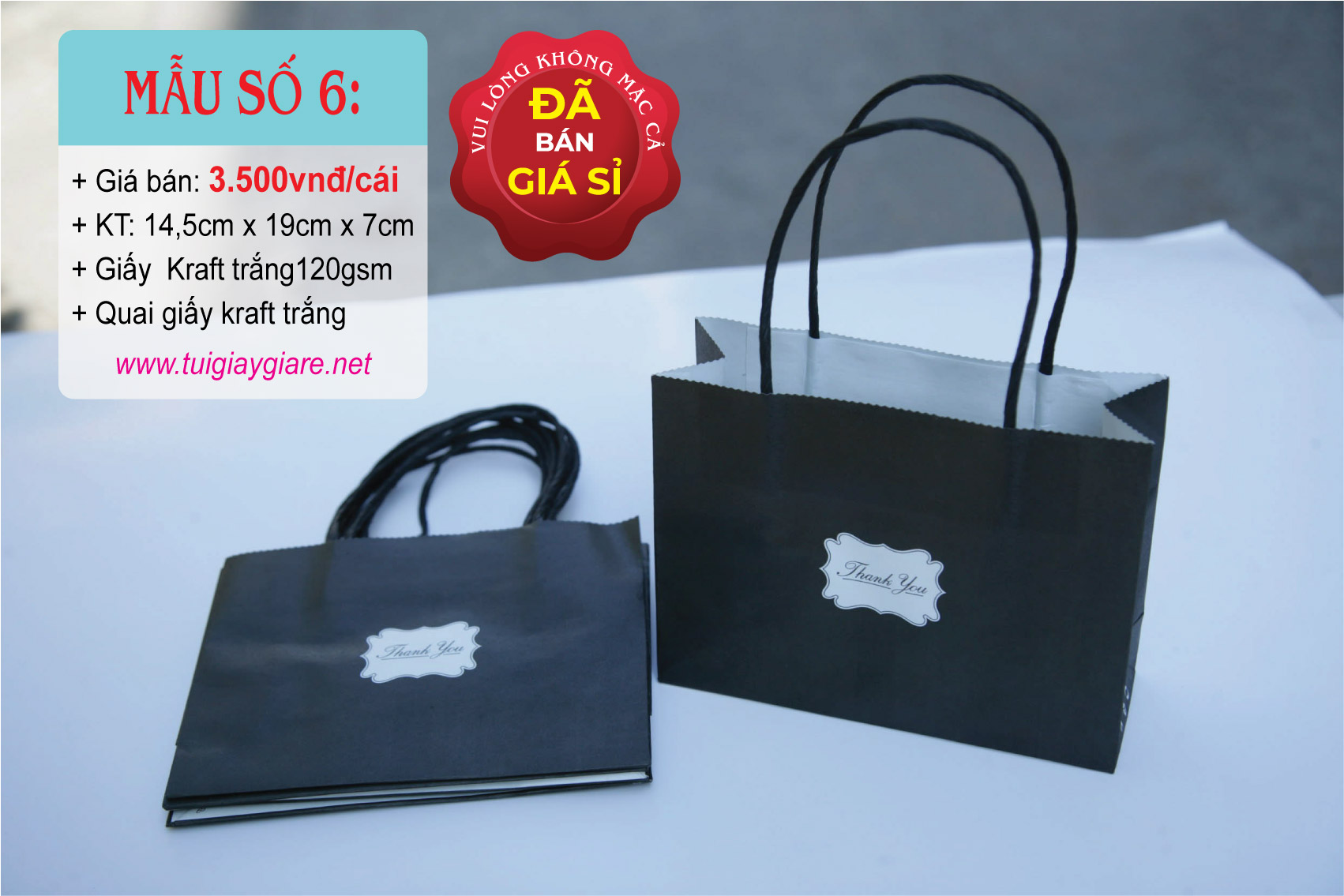 Loại quai: Quai giấy kraft trắng.